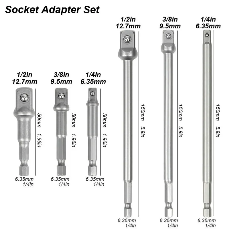 Hex Shank Driver Socket Adapter: Power Drill Sockets Adapter Sets