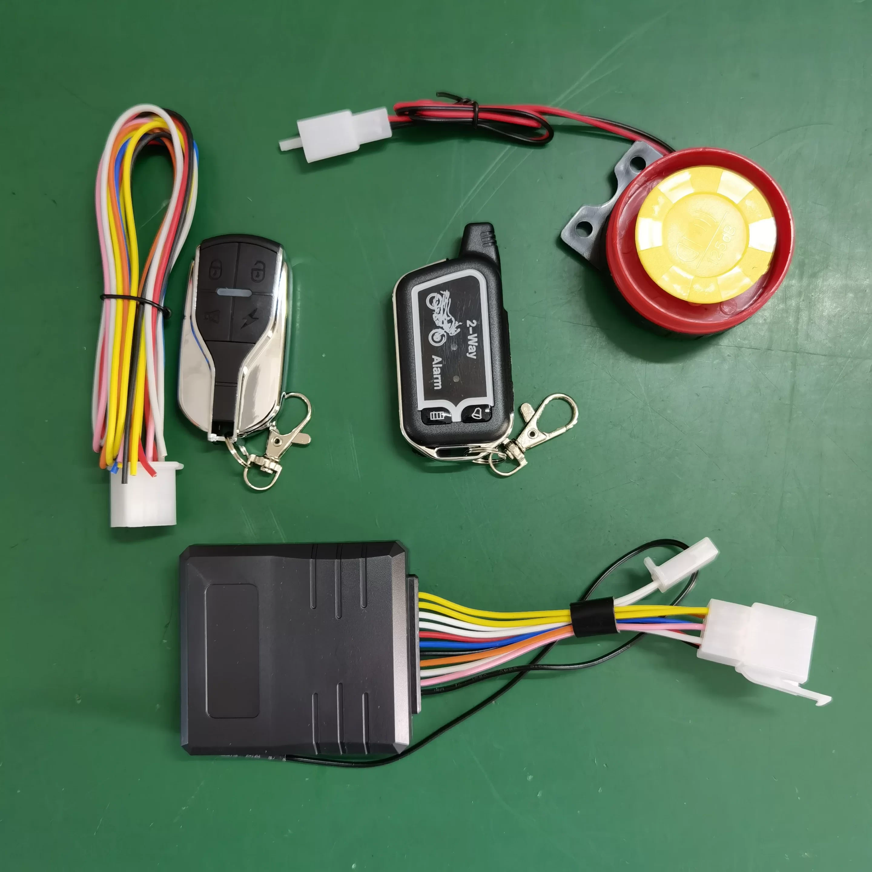 Bidirectional motorcycle alarm, bidirectional remote control with vibration, sound, when the host alarm, the remote control in the receiving range also alarm and vibration.