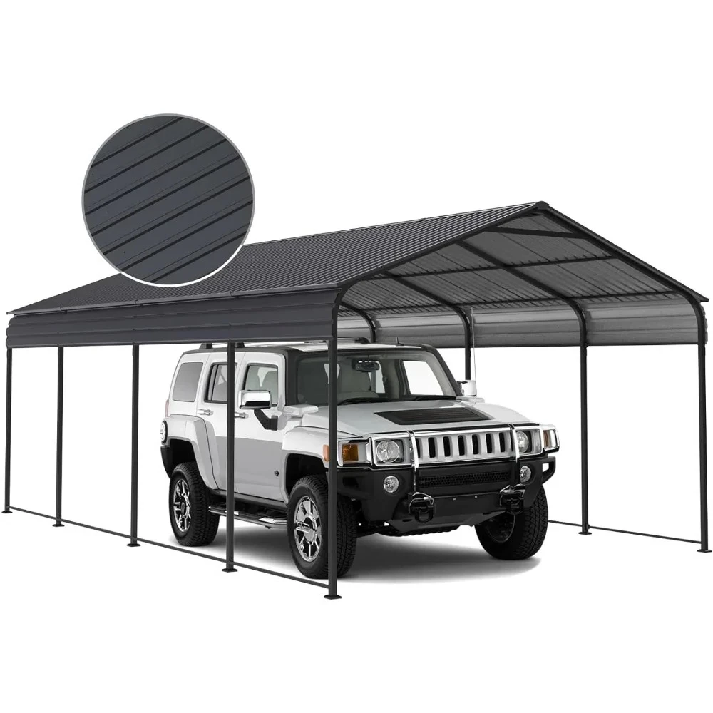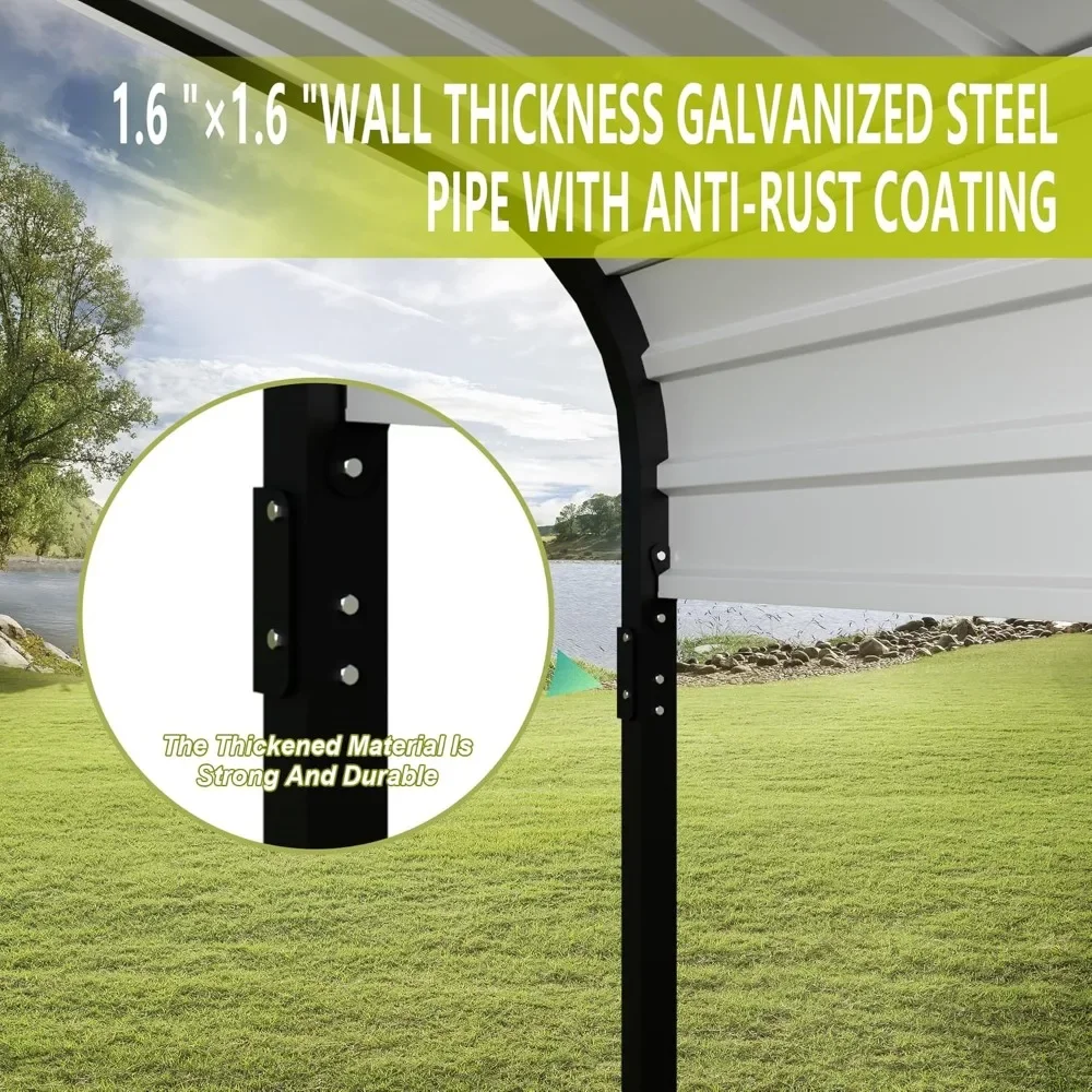 12x20x8.7 FT Carport with Galvanized Steel Roof, Heavy Duty Metal Carport