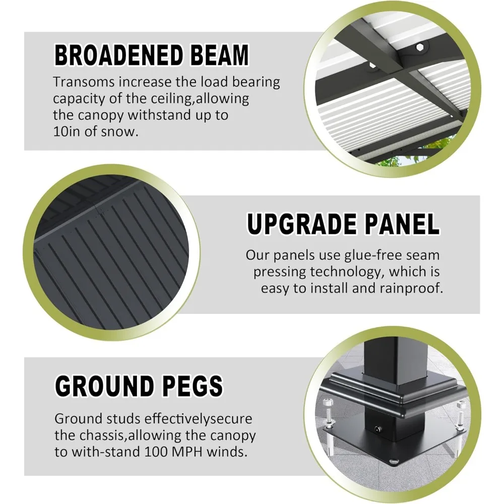 • 【UPGRADED RAINPROOF CANOPY】Different from the carports on the market,our canopy adopts a vertical stripe design, which is more conducive to the drainage of rainwater, canopy is installed with a press seam design to prevent rain leakage.