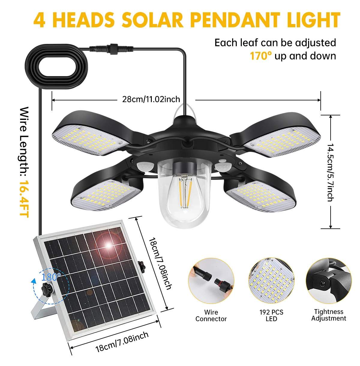 【Ultra-bright LED High Efficiency & Durable】–The upgraded solar lights indoor uses 192 ultra-bright LED chips and monocrystalline silicon solar panels, with high brightness and high lumen conversion efficiency. The maximum brightness can reach 1000 lumens