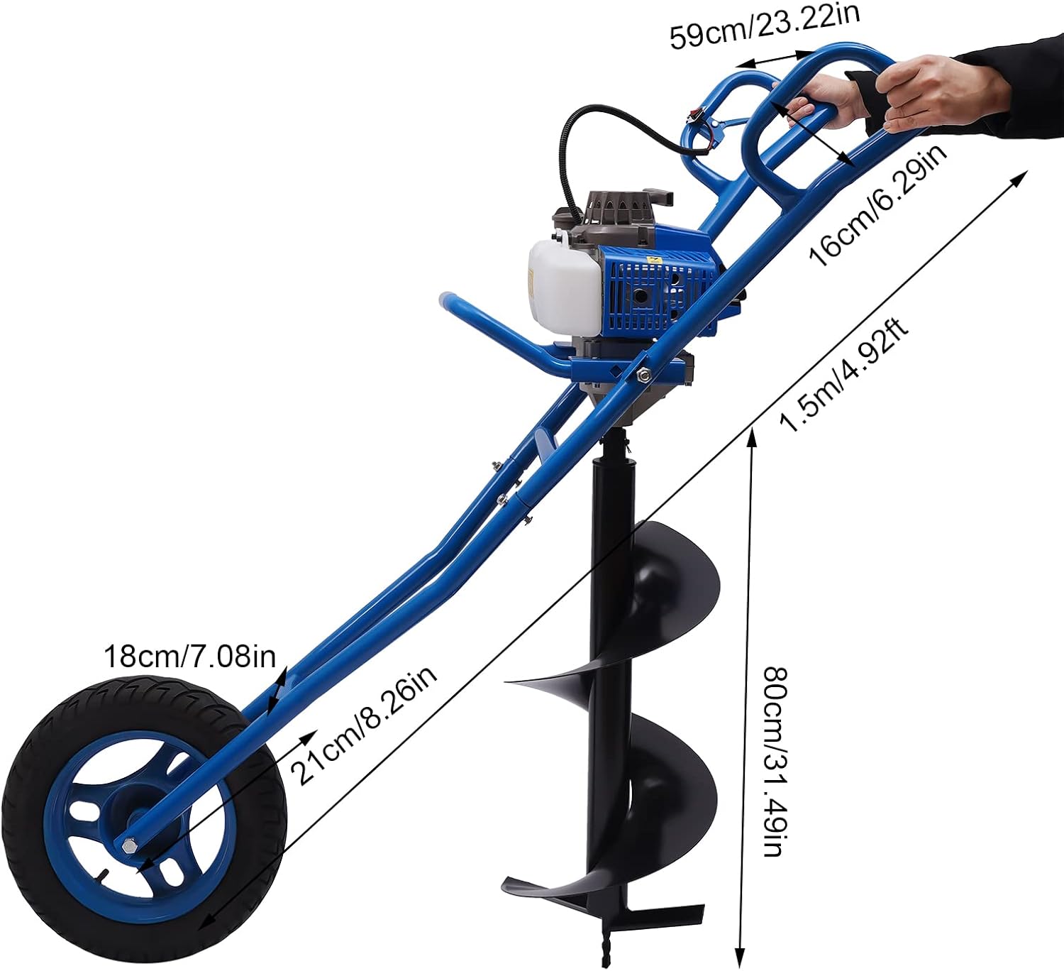 Convenient to Operate: It has a simple hand-pull starter that makes it easy to start the machine by simply pulling it back. Then you just need to hold the two handles and push down to achieve digging, even one person can operate it easily.