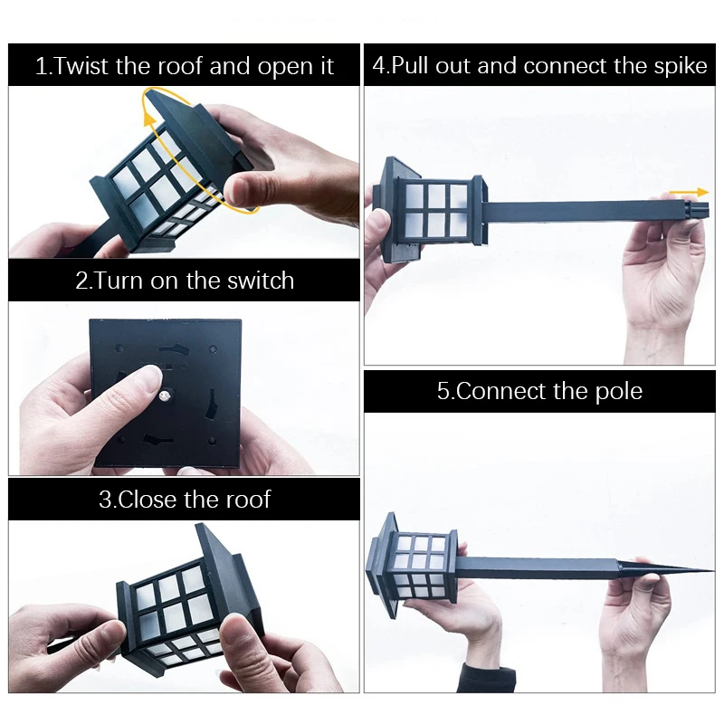 【EASY TO INSTALL】No additional tools, wiring, or power supply is needed. Installation steps is packed in the box.ONLY 3 MINUTES,the installation can be completed. The Solar garden lights turn on at nigh and turn off at dawn automatically.