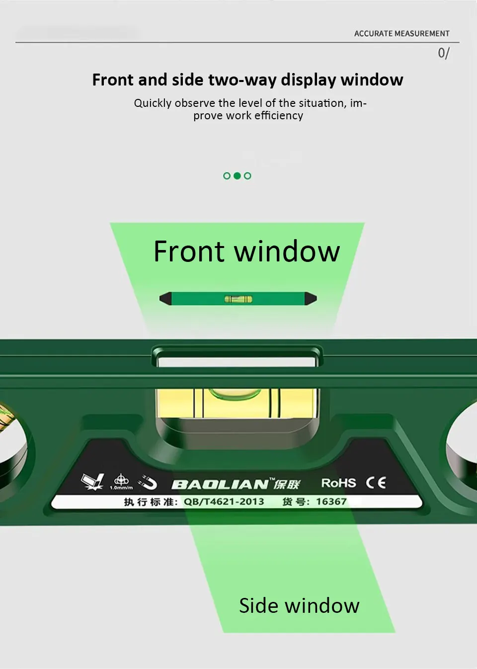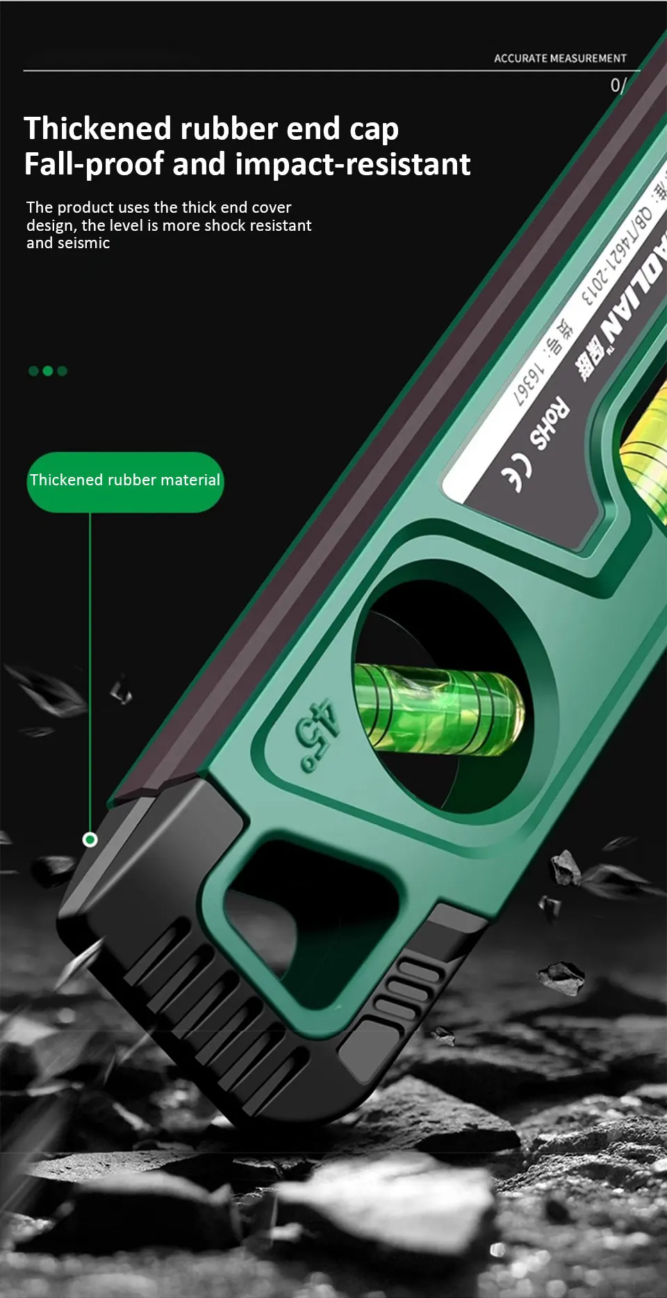 ●Anti fall and impact resistance: Adopting a thickened end cover design, the level ruler is more impact resistant and earthquake resistant.