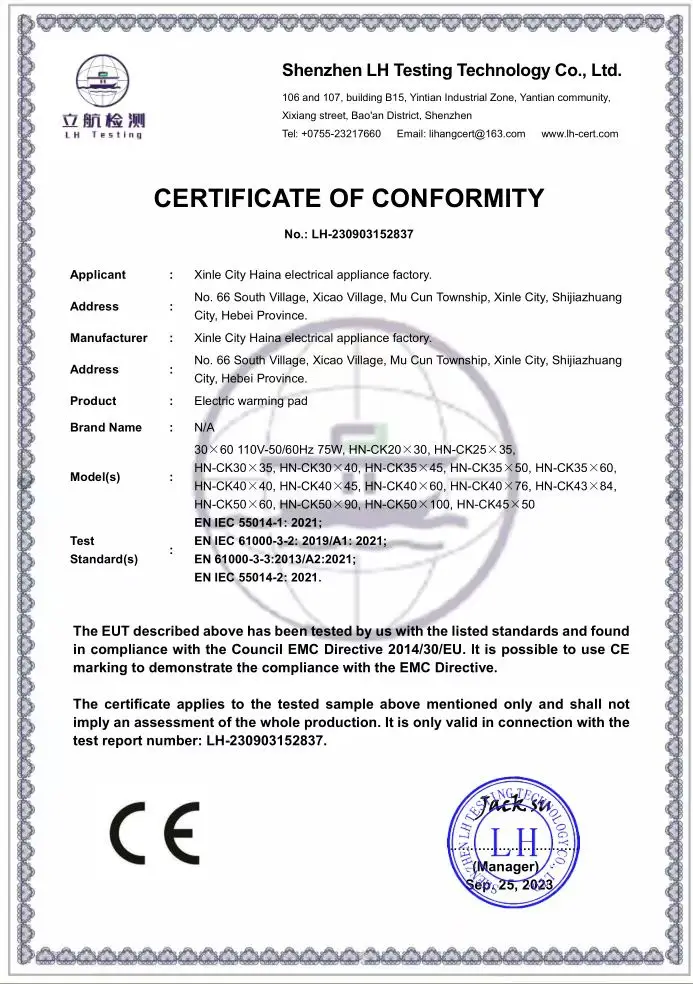 Heating temperature of heating pad: gear 30-65℃