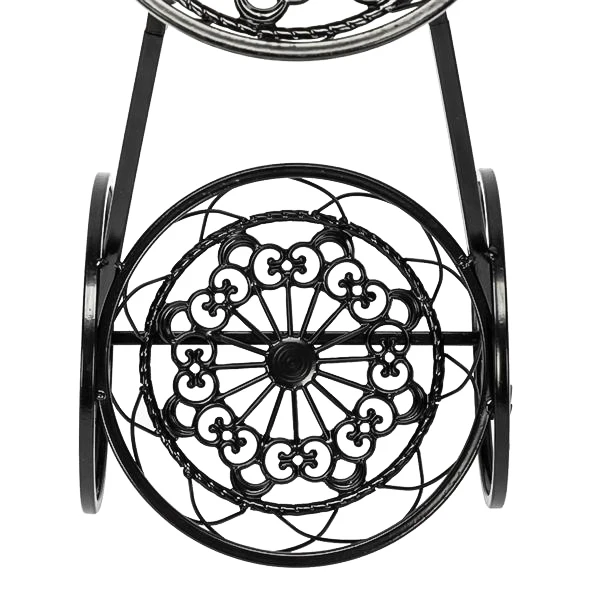 European style bicycle shape stand boasts decorative (non-rolling) wheels.