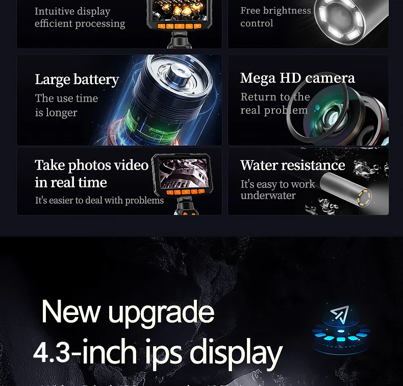 5.【Small Probe & 6 LED Lights】-Articulating borescope is equipped with an 6mm inspection camera surrounded by 6 LED lights to ensure that a clear picture can be captured even in dark conditions, allowing easy access through hard-to-reach areas such as mechanical inspection, car or truck repair, plumbing repair, electrical installation, house DIY, ceiling, wall upgrade, cleaning air conditioning repair, and more.