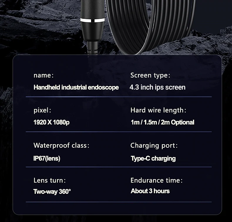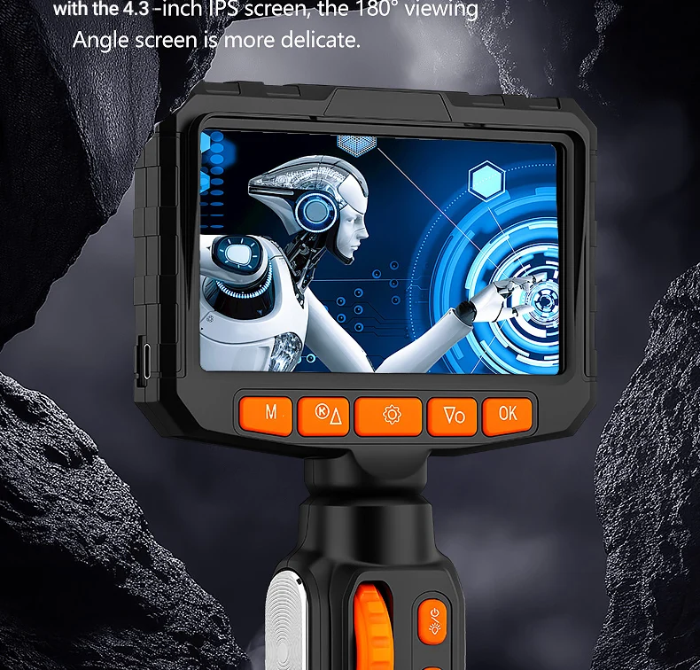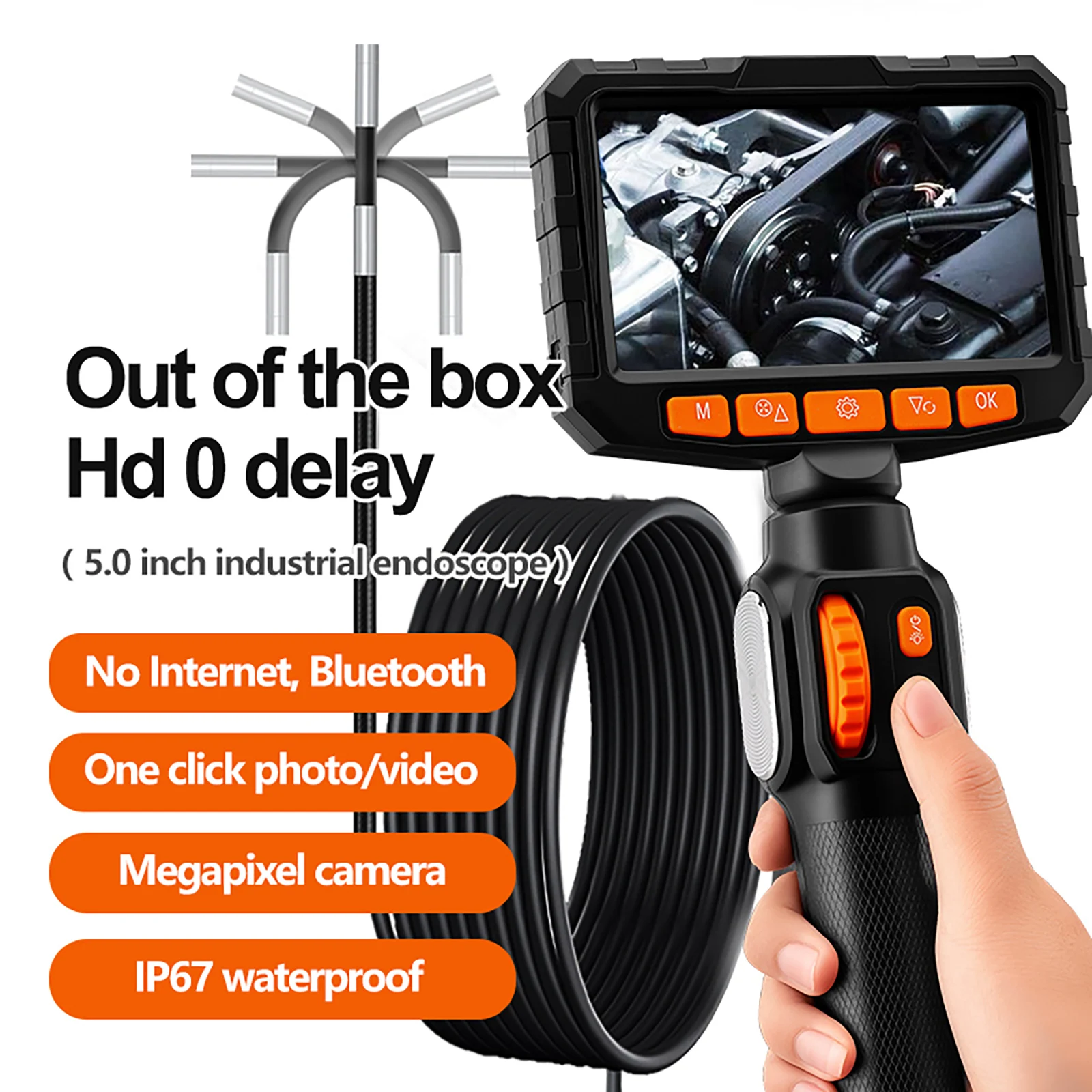 360° 4.3 inch Two-Way Rotary Articulating Endoscope Camera HD 1080P 6mm Car Inspection Borescope Industrial Endoscope 1m Cable