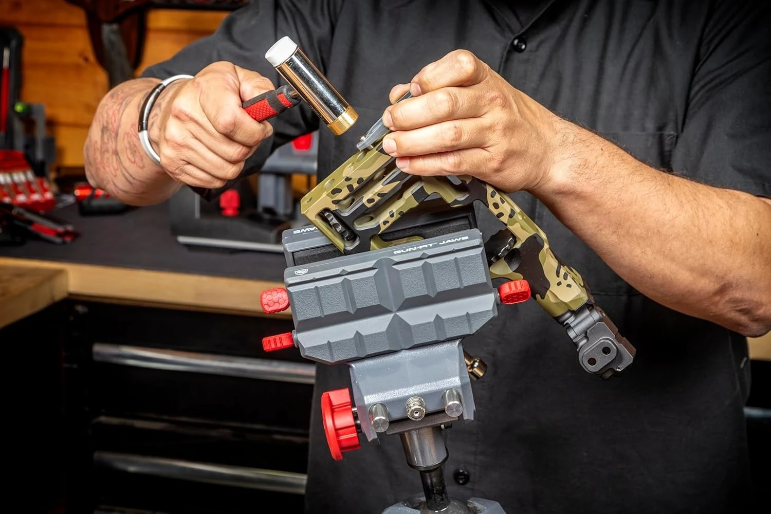 ✔【Integrated leveling knob】 allows for +/- 3° of side-to-side micro adjustment, ensuring precise alignment and accuracy. This feature guarantees that your rifle scopes are perfectly positioned, optimizing your shooting experience and increasing your chances of hitting the mark. Makes scope mounting a breeze with the Master Gun Vise.