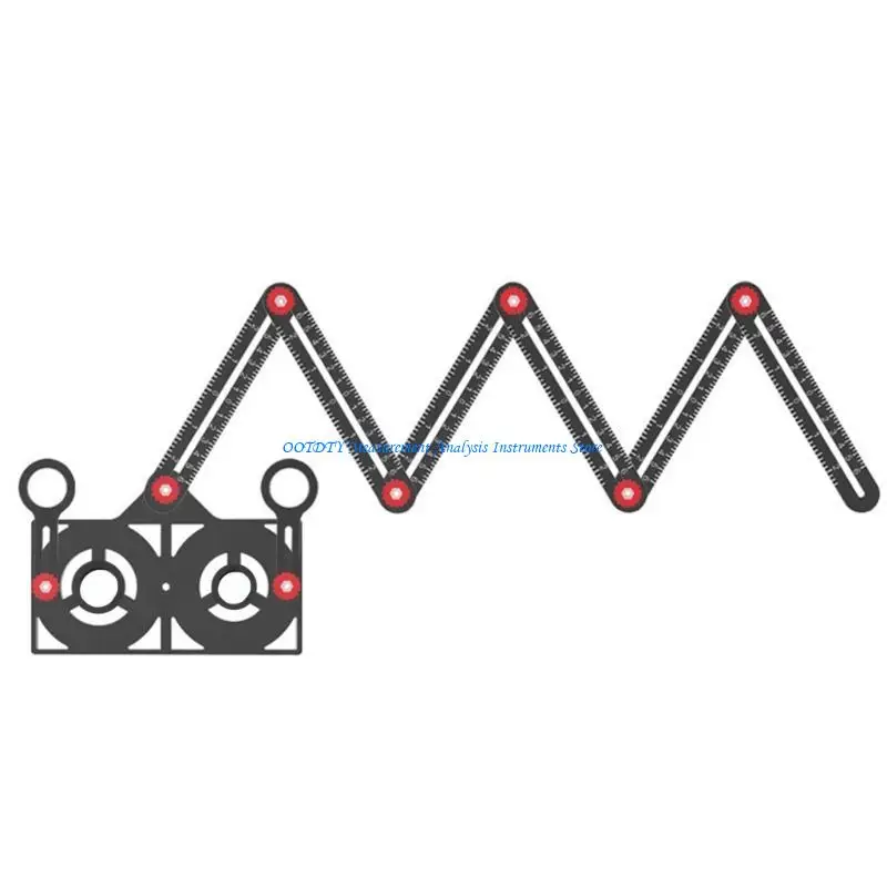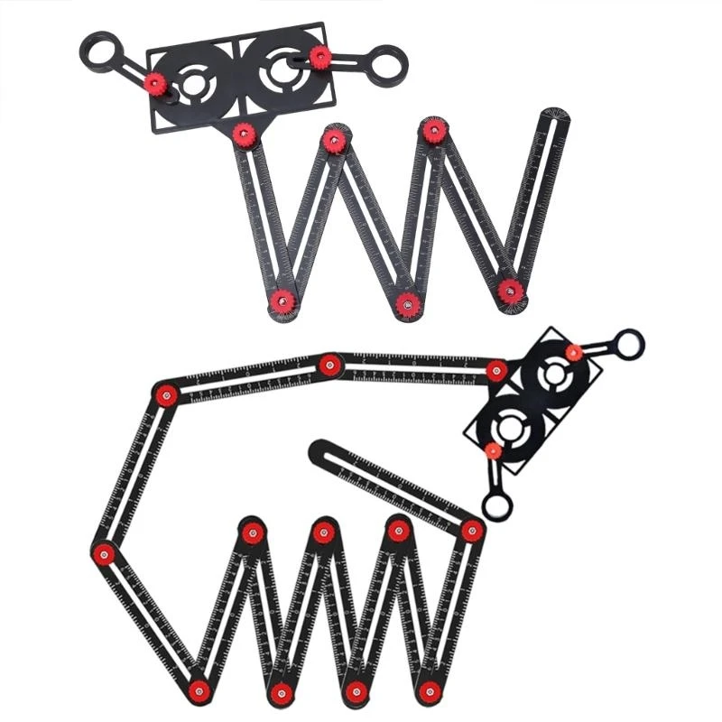 Our multi-angle measuring ruler is newly upgraded and feature-rich. It is a measuring tool and tile positioning hole opener. Other common measuring scales consist of only a four-piece ruler. Our newly upgraded universal ruler has a six-piece ruler and six metal knobs that fold freely. Simply adjust the six metal knobs to precisely create the you want. Measuring objects of different shapes is quick and easy.