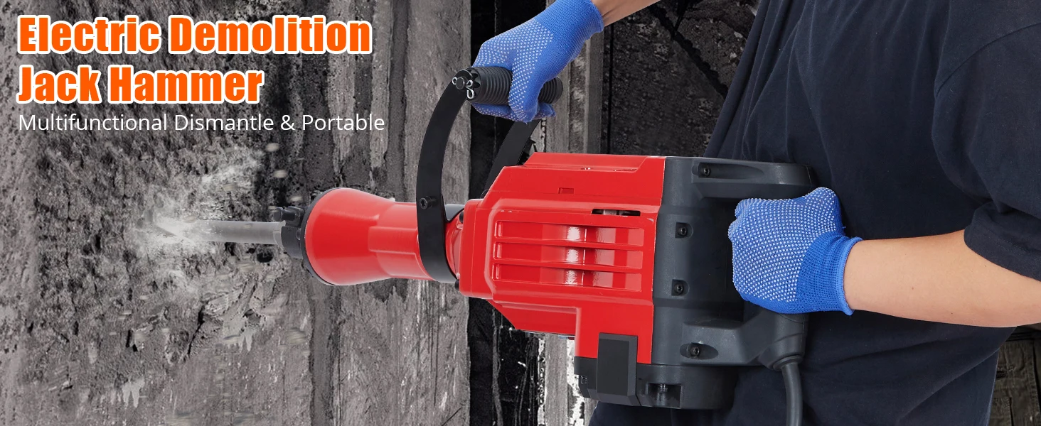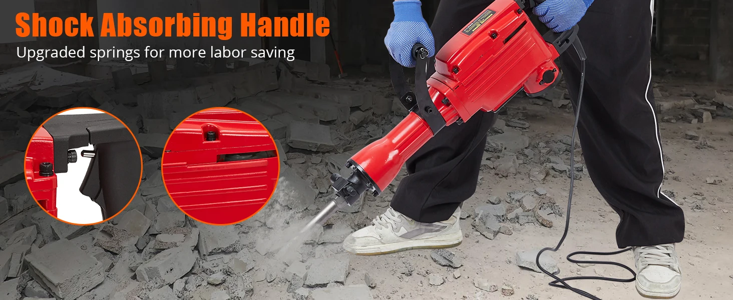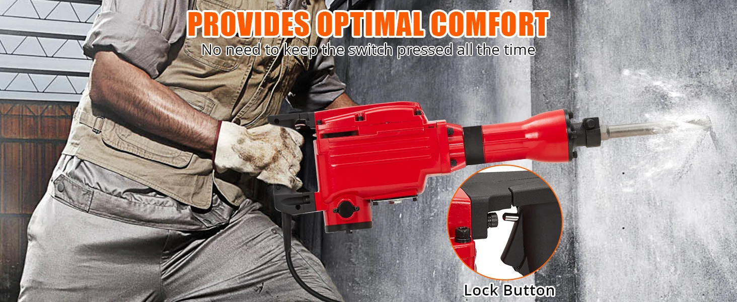 5. 【Safety Features and Maintenance Convenience】Safety is paramount in any work, and our Electric Demolition is equipped with safety features to keep you on the job. Vibration control technology reduces fatigue and enhances user safety, while the D-shaped handle absorbs vibrations for added during extended use. The and locking buttons provide secure speed control, giving you confidence in handling the tool.
