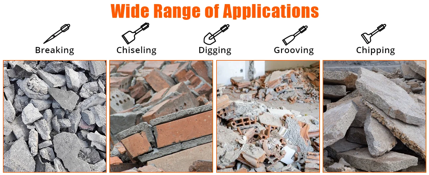 4. 【Wide Range of Applications】This 110V is a versatile tool suitable for a wide range of applications, from concrete and block to brick and tile mortar work. Whether you’re demolishing house foundations, breaking up concrete slabs, or working on mechanical installations, this electric delivers the precision and efficiency needed for various and renovation projects.