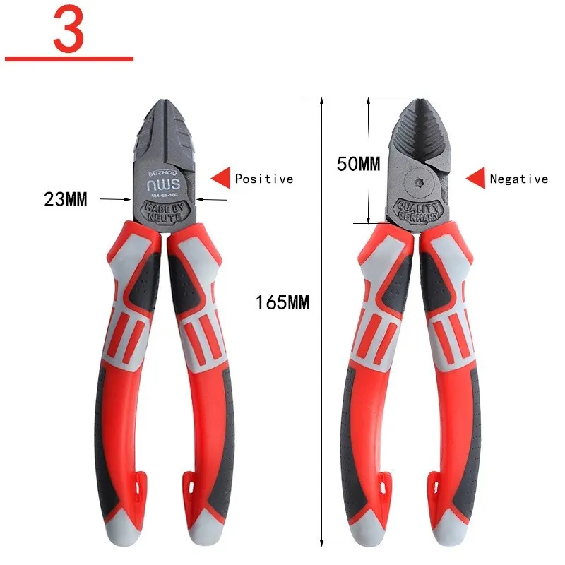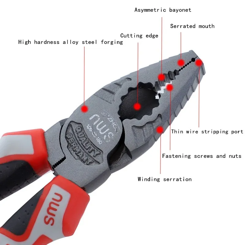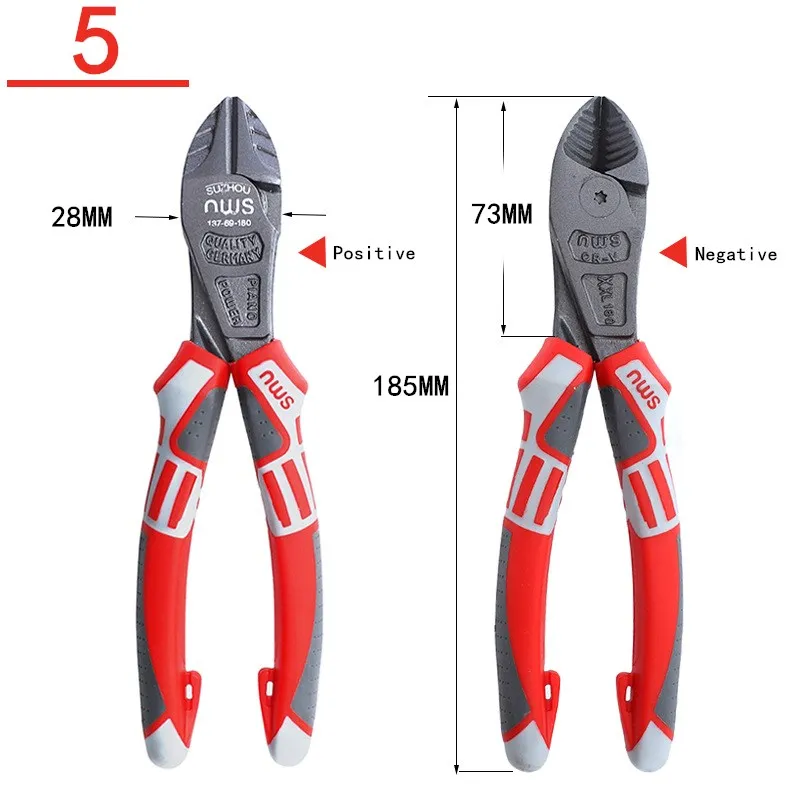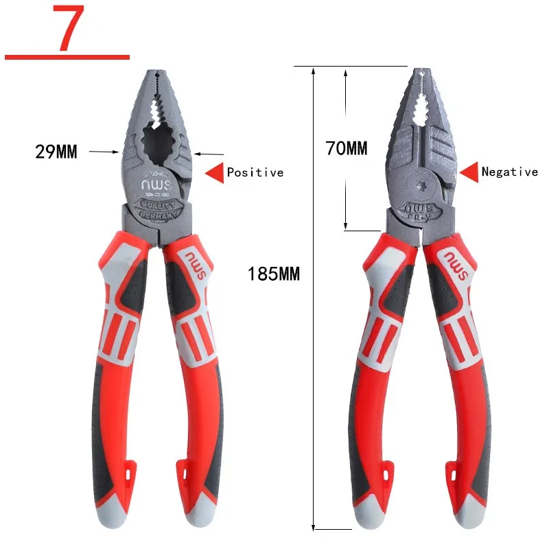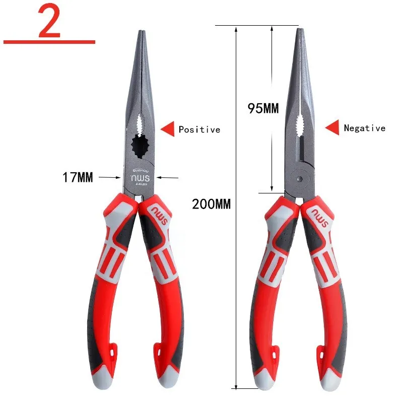 [Wire cutters, needle-nose pliers]: Integrated plum blossom open-end wrench function for clamping, clamping, bending and cutting.