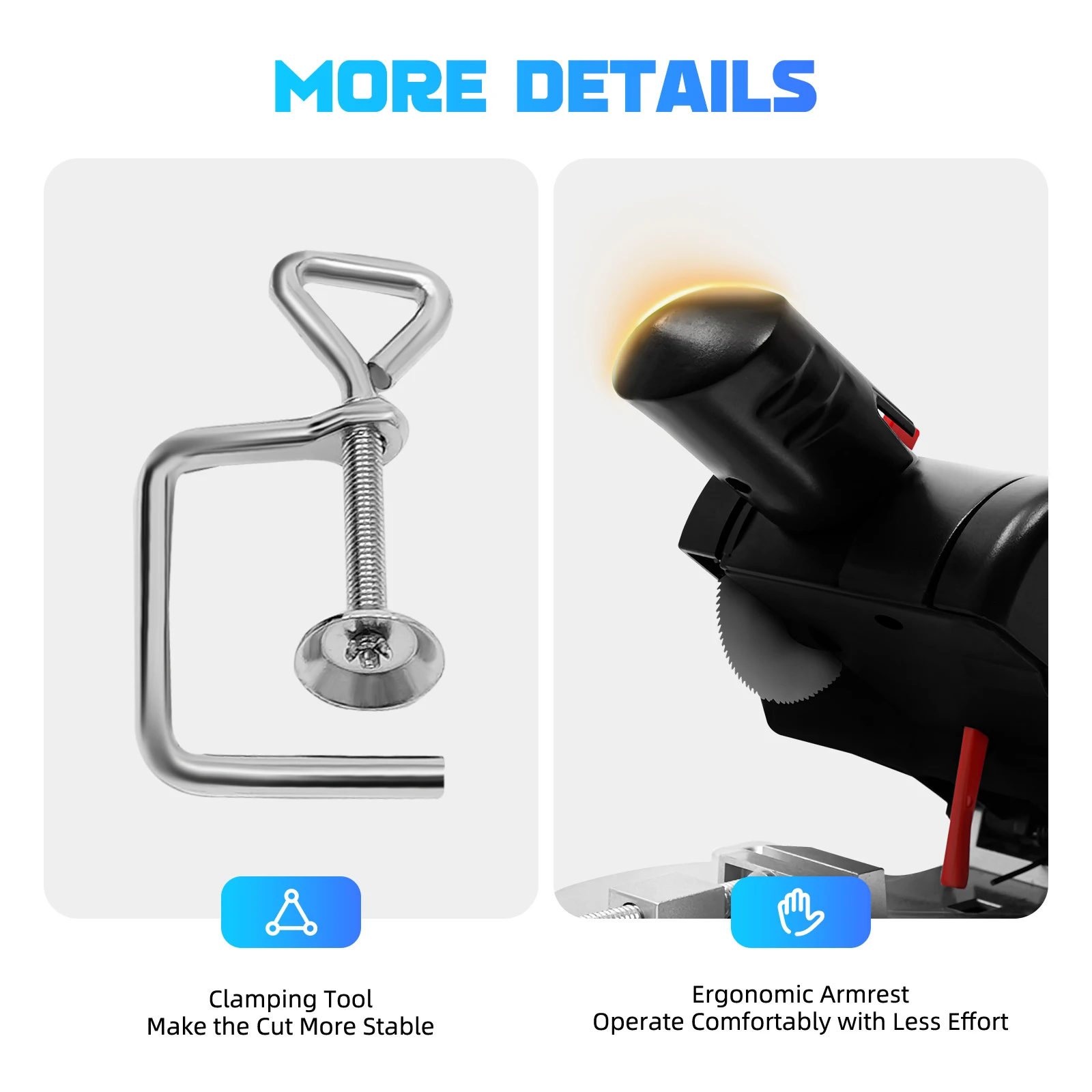 High Working Efficiency: The item is equipped with a 90W powerful motor and the rotating speed can reach 6000rpm, providing strong power for your cutting work and ensuring that you can complete the cutting task in a short time.