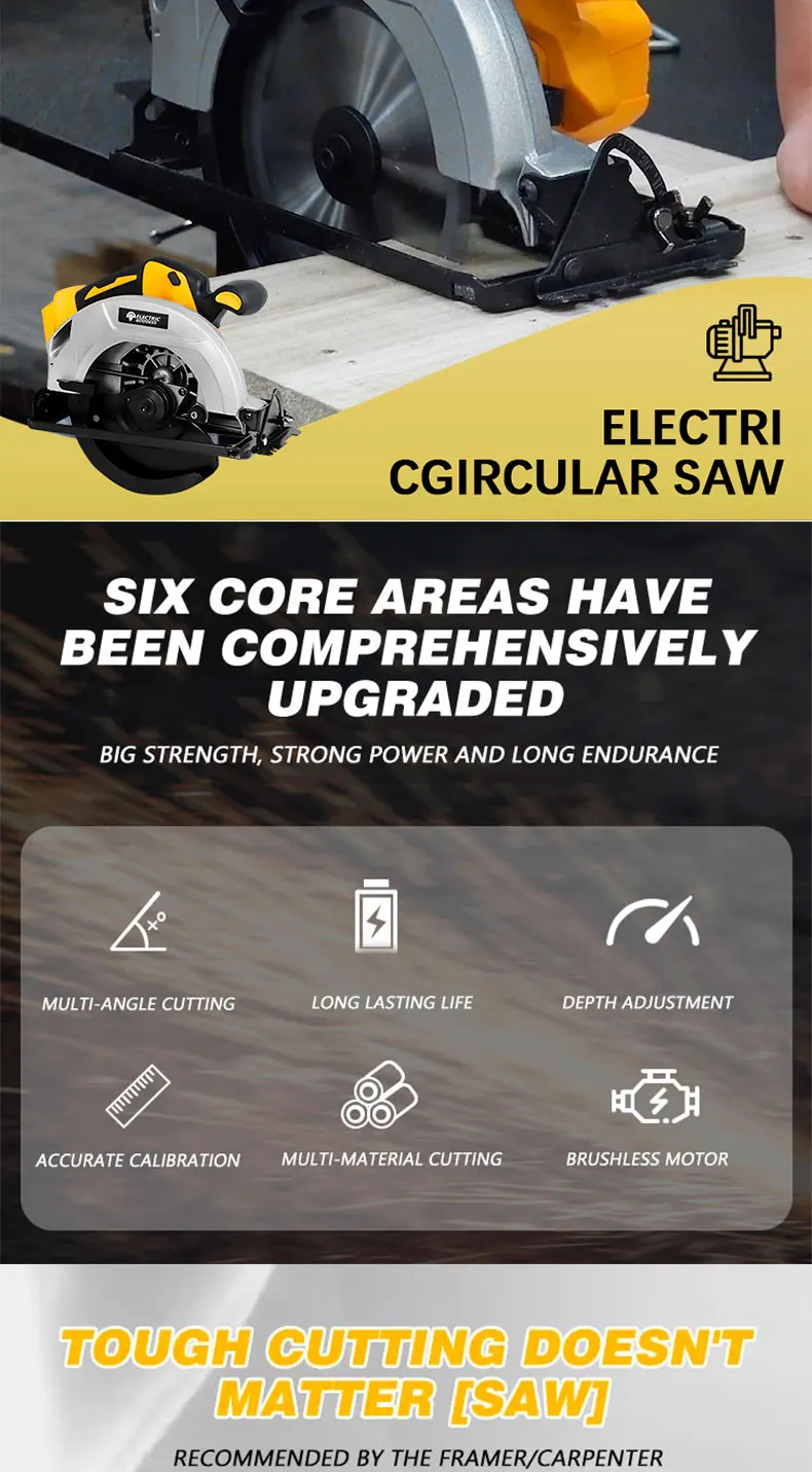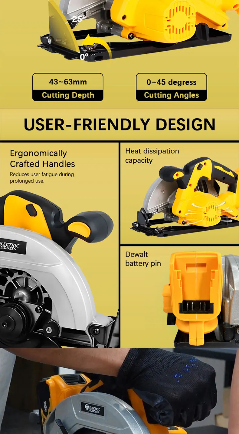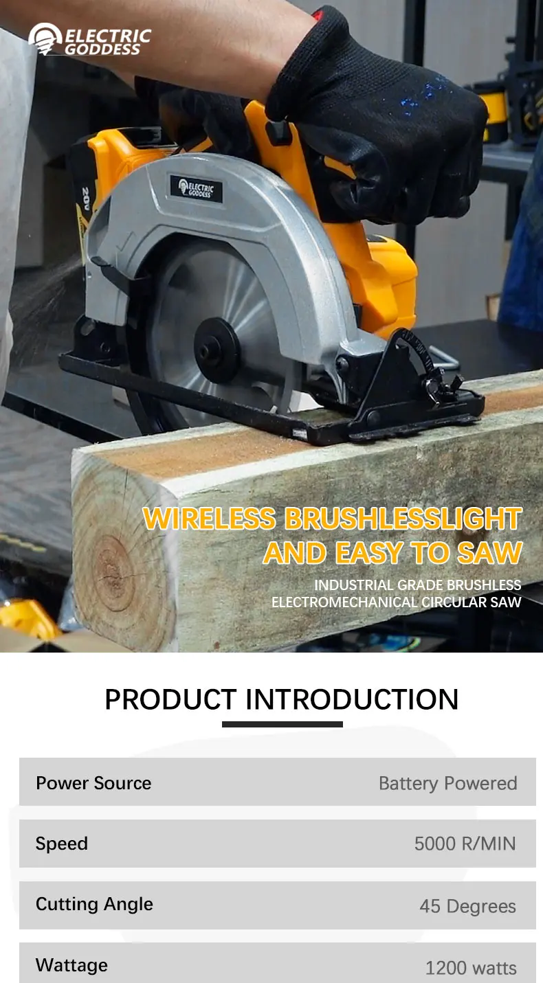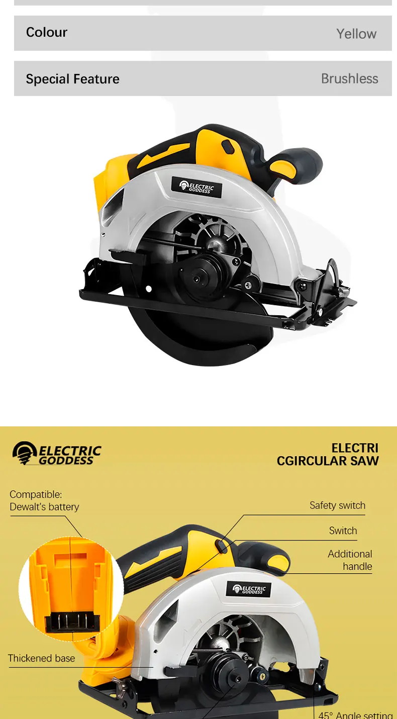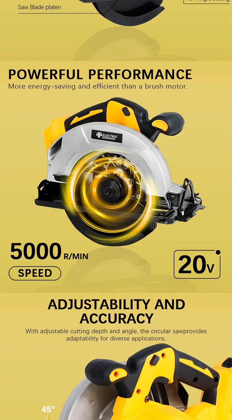 Electric Goddess 7-inch Cordless Circular Saw 5000rpm Brushless Woodworking Saw 45-degree Cutting Angle Adjustment For Dewalt 20v Batteries