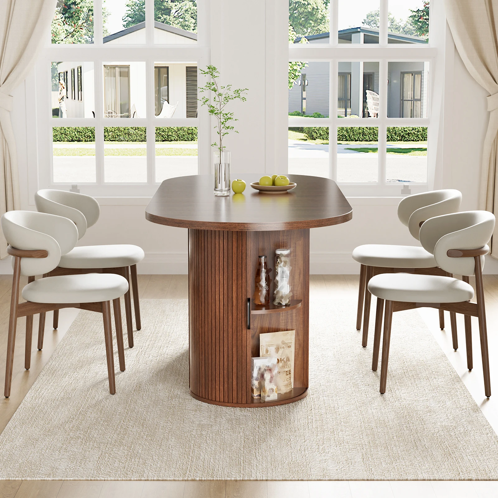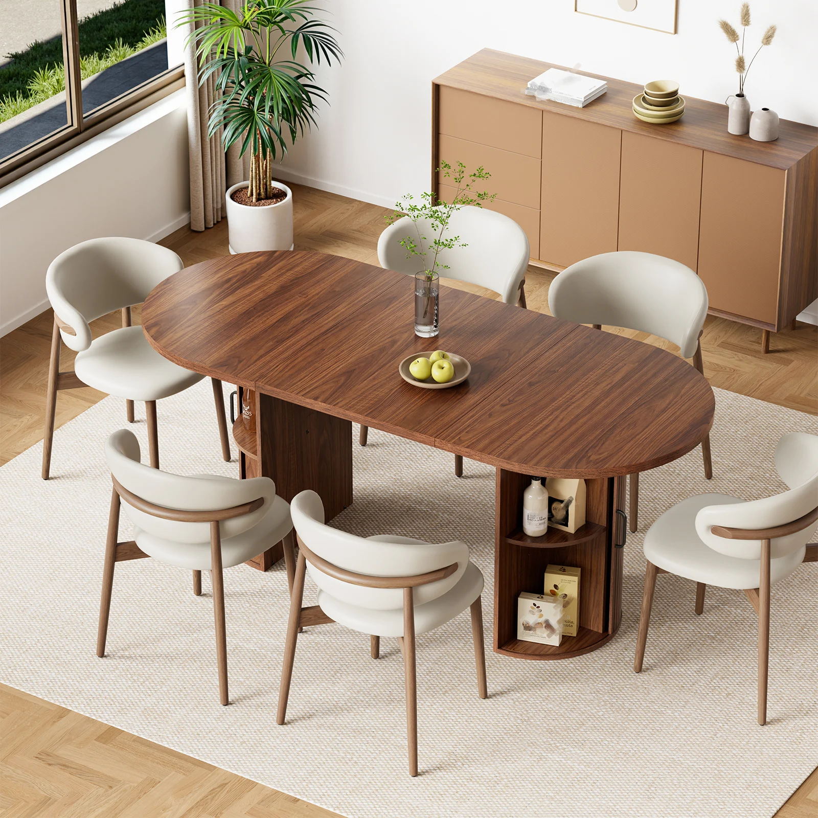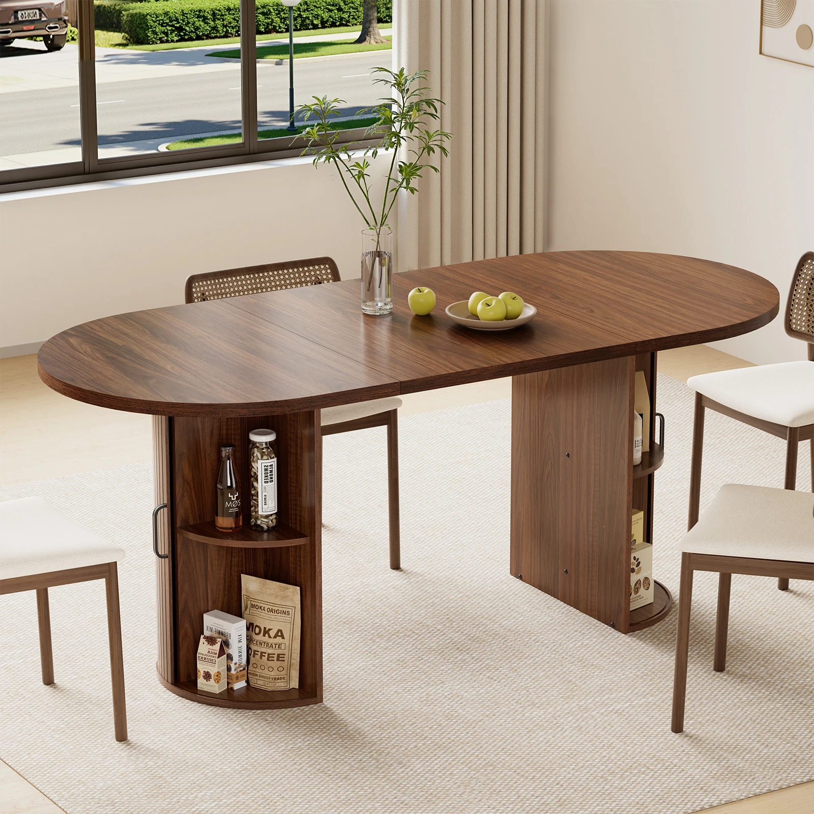 1 x Oval storage table with dual bottom shelves