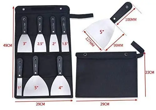 7pcs Putty Knife Set 1"1.5" 2" 2.5" 3" 4" 5" Stainless Steel Putty Knife Paint Putty Knife Scraper Blade Putty Knife Tool Bag