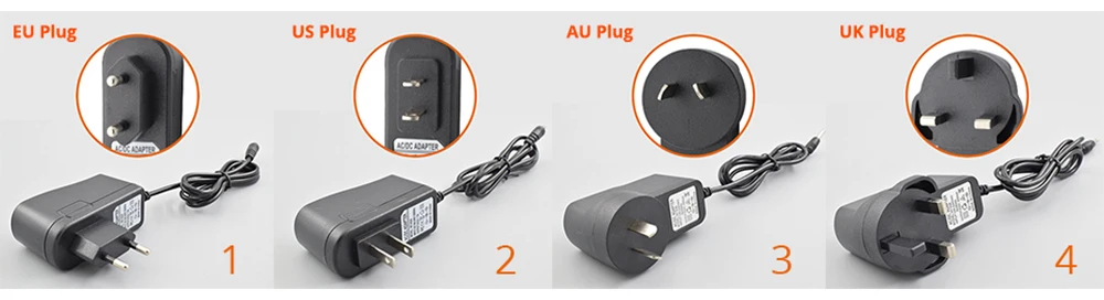 Optional Power Adapter types: EU Plug, US Plug, AU Plug, UK Plug