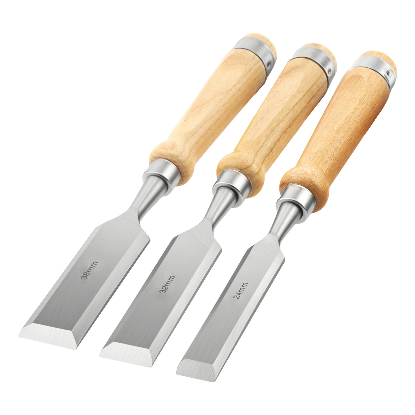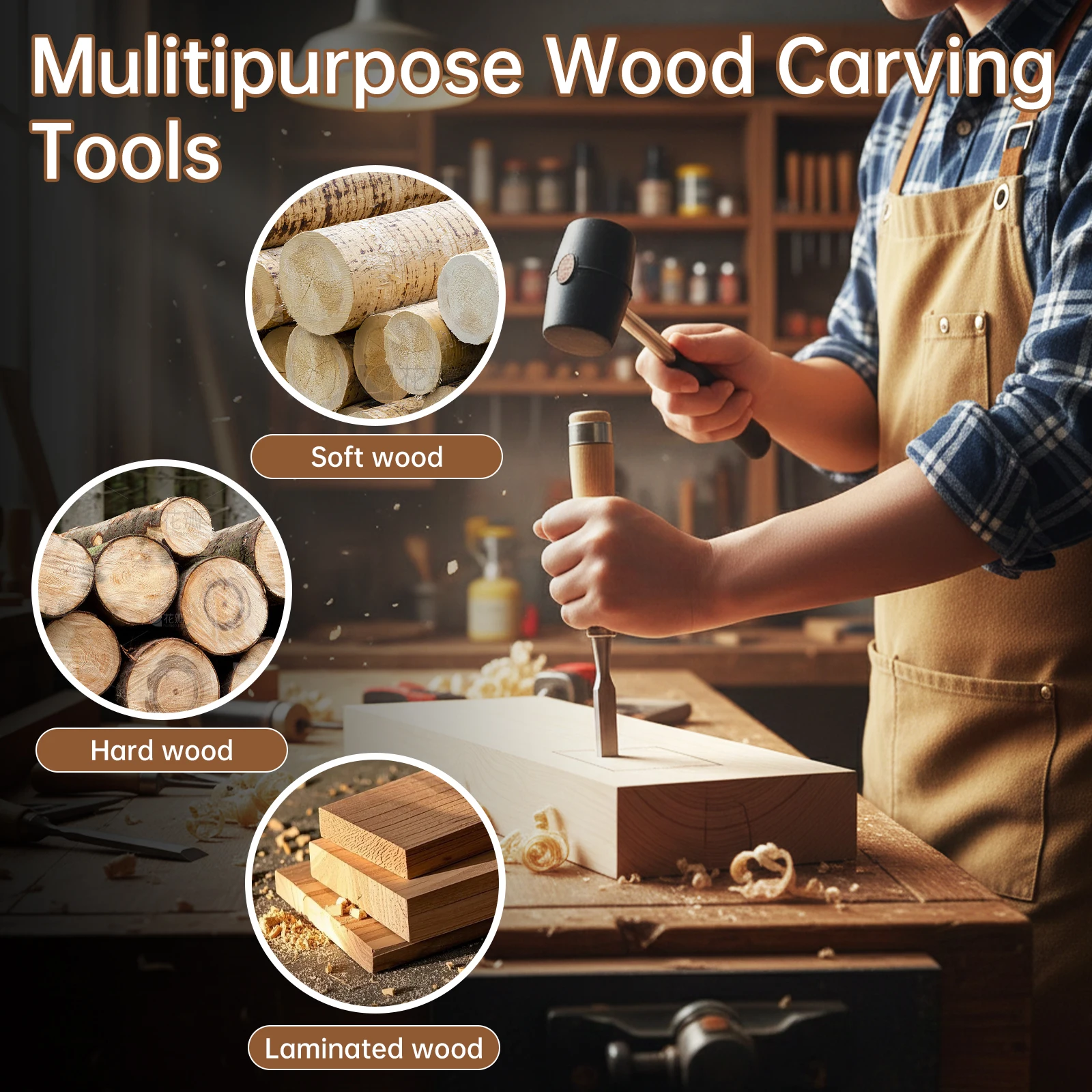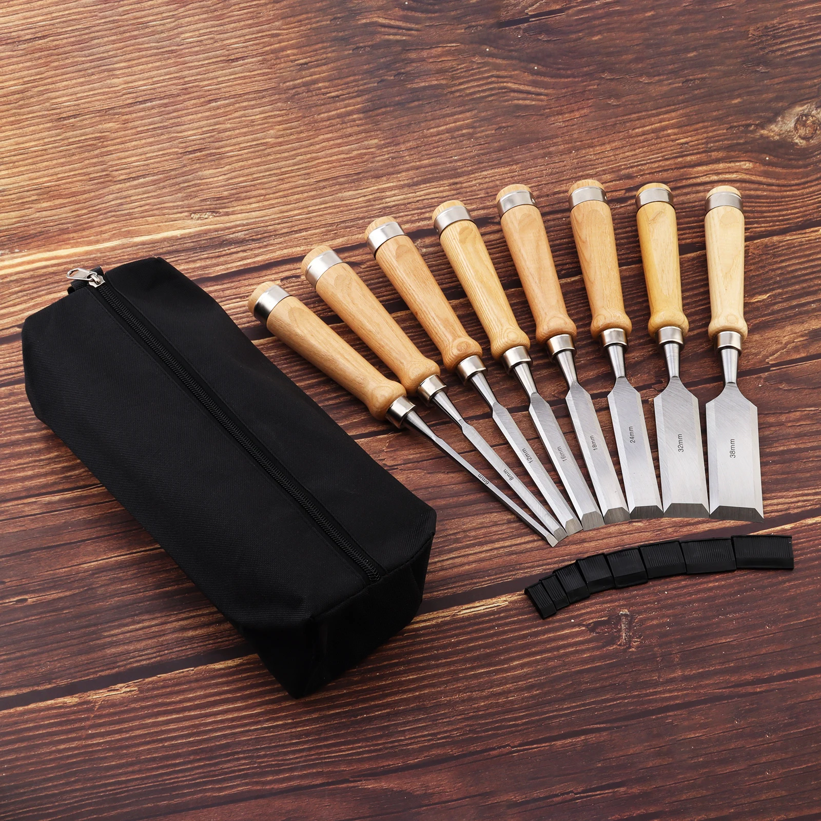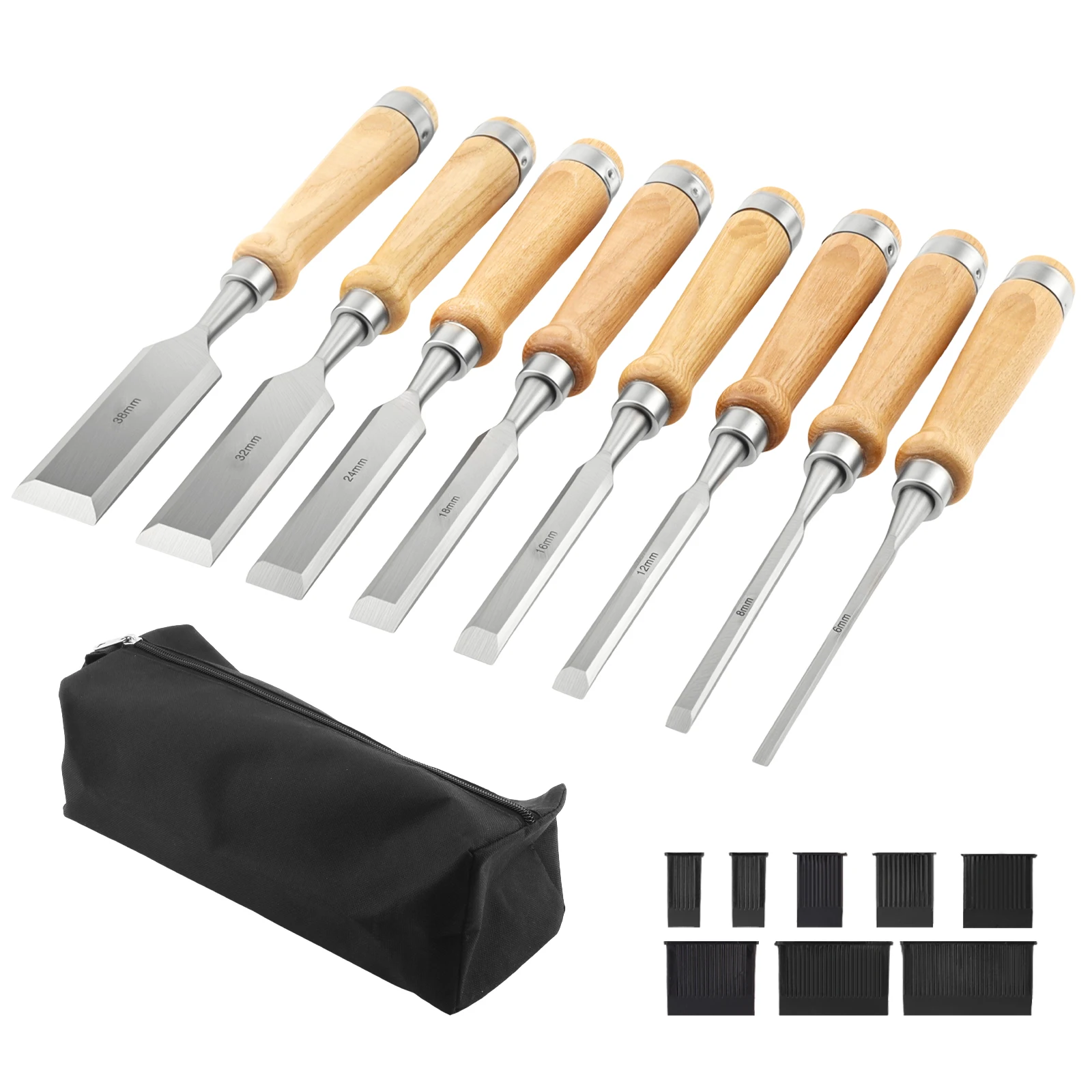-Full Range of Size: Complete size selection includes 1/4 inch(6mm), 5/16 inch(8mm), 1/2 inch(12mm), 3/4 inch(18mm), 13/16 inch(20mm), 1 inch(24mm), 1 1/4 inch(32mm), 1 1/2 inch(38mm) chisels, covering most woodworking needs for different cutting and carving tasks. - Place of Application: Suitable for working with hardwoods and multiple wood types, meeting requirements of both daily DIY projects and professional woodworking tasks.