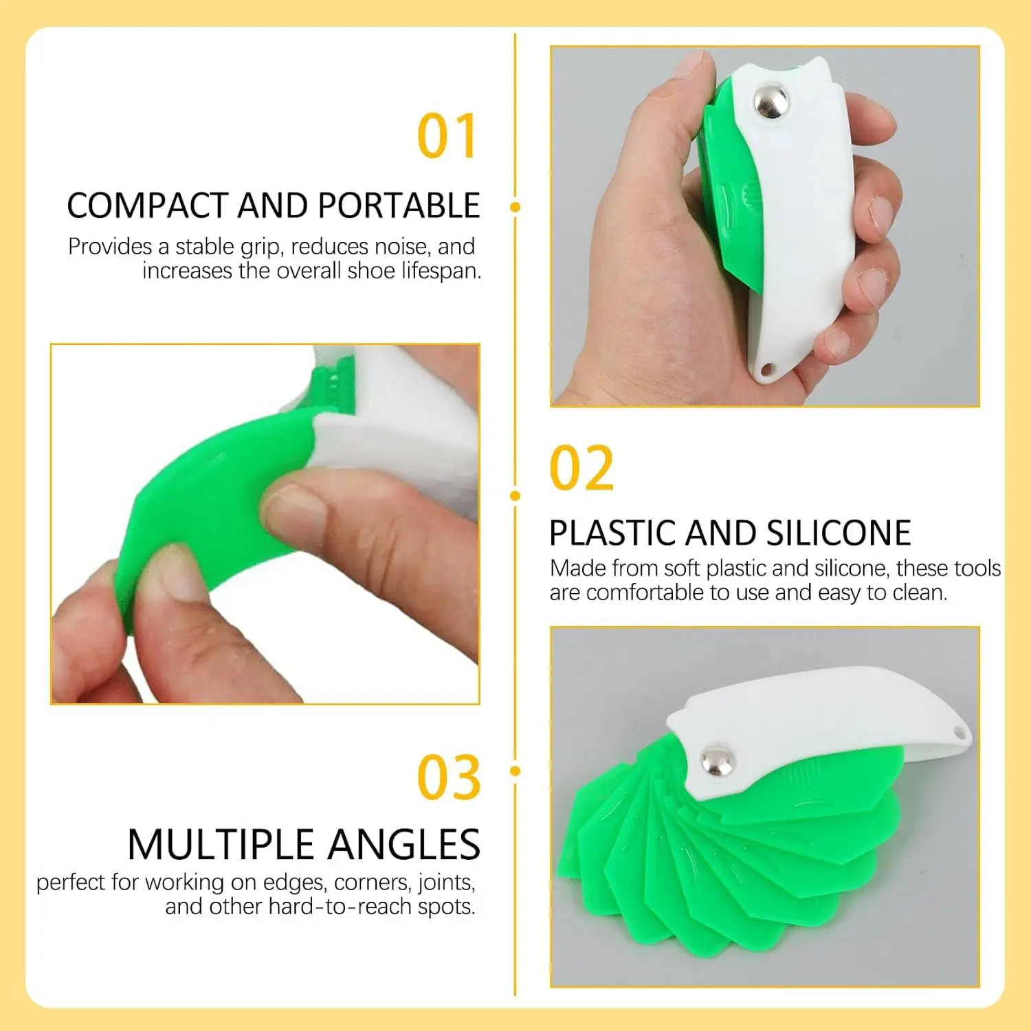 VERSATILE USE: Perfect for sealing gaps in kitchens, bathrooms, windows, doors, etc. It's also suitable for smoothing grout lines, applying adhesive, sealing, caulking, and scraping, making it a must-have for a professional, decoration worker, DIY enthusiast, or professional contractor.