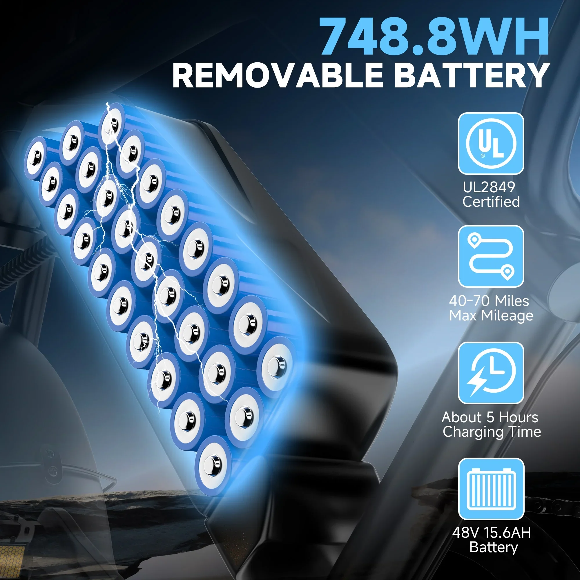 【48V 15.6AH BATTERY】–Large Capacity battery let it become a veritable long range ebike, allowing you to ride up to 40 miles per charge.Charging time is about 6 hours,the battery is removable and can be charged indoors or outdoors.