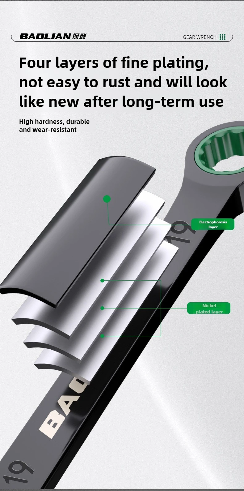 BAOLIAN Dual Directional Fast Plum Blossom Ratchet Wrench, Industrial Grade Automatic Small Opening Dual-use Wrench Tool