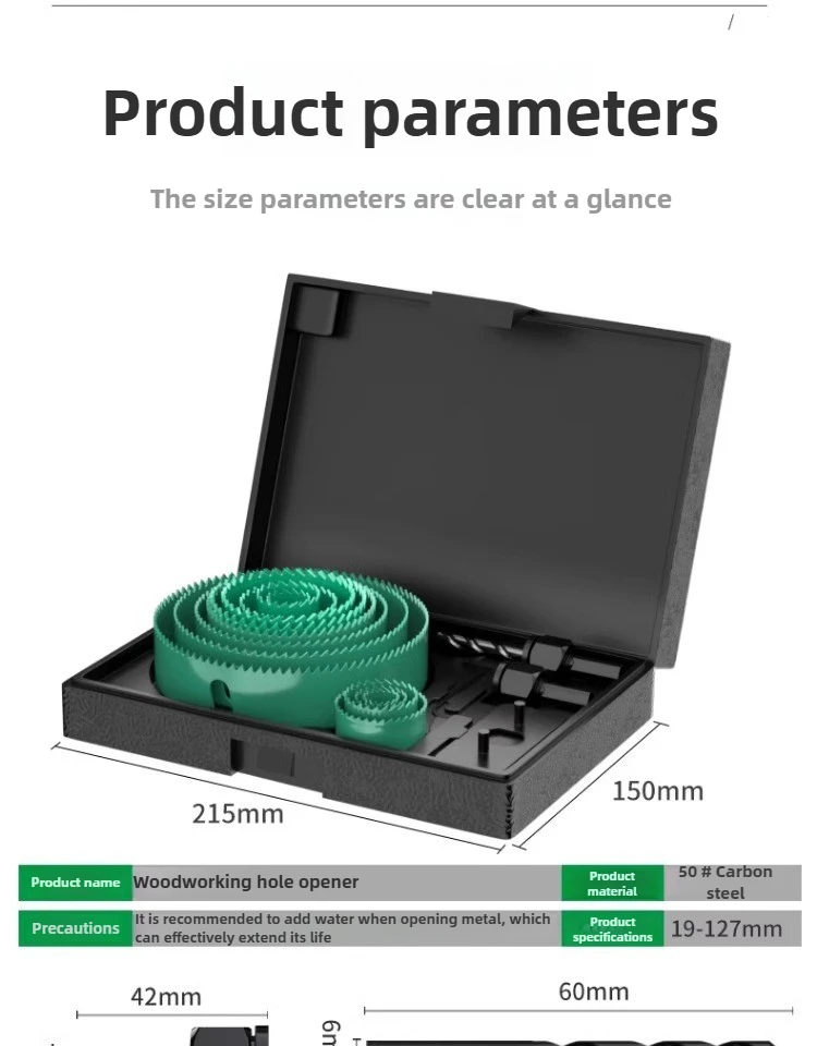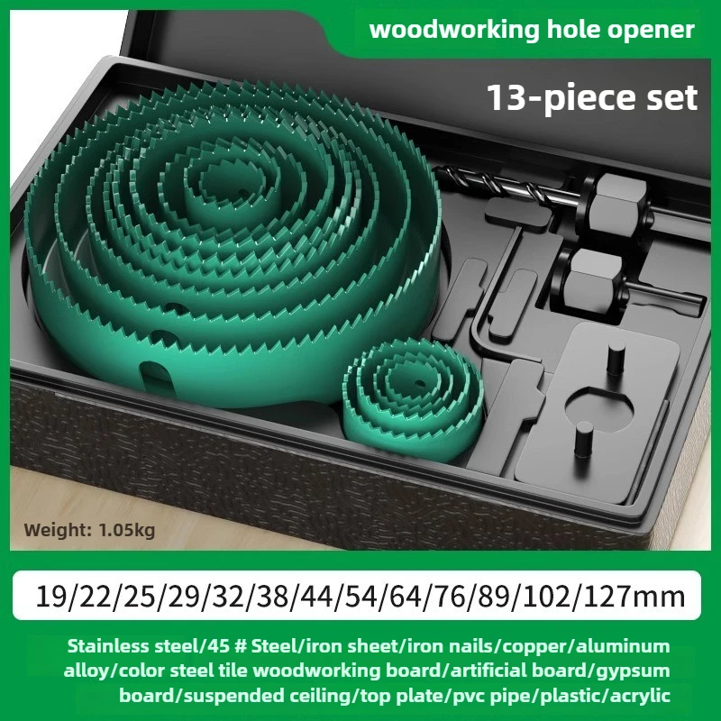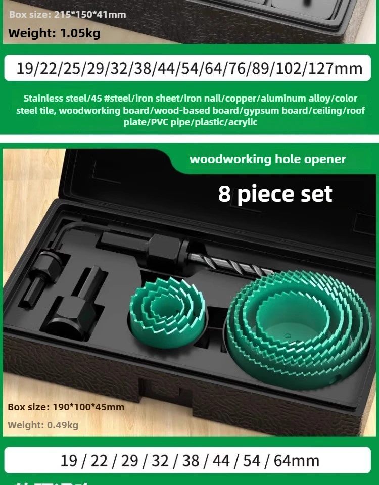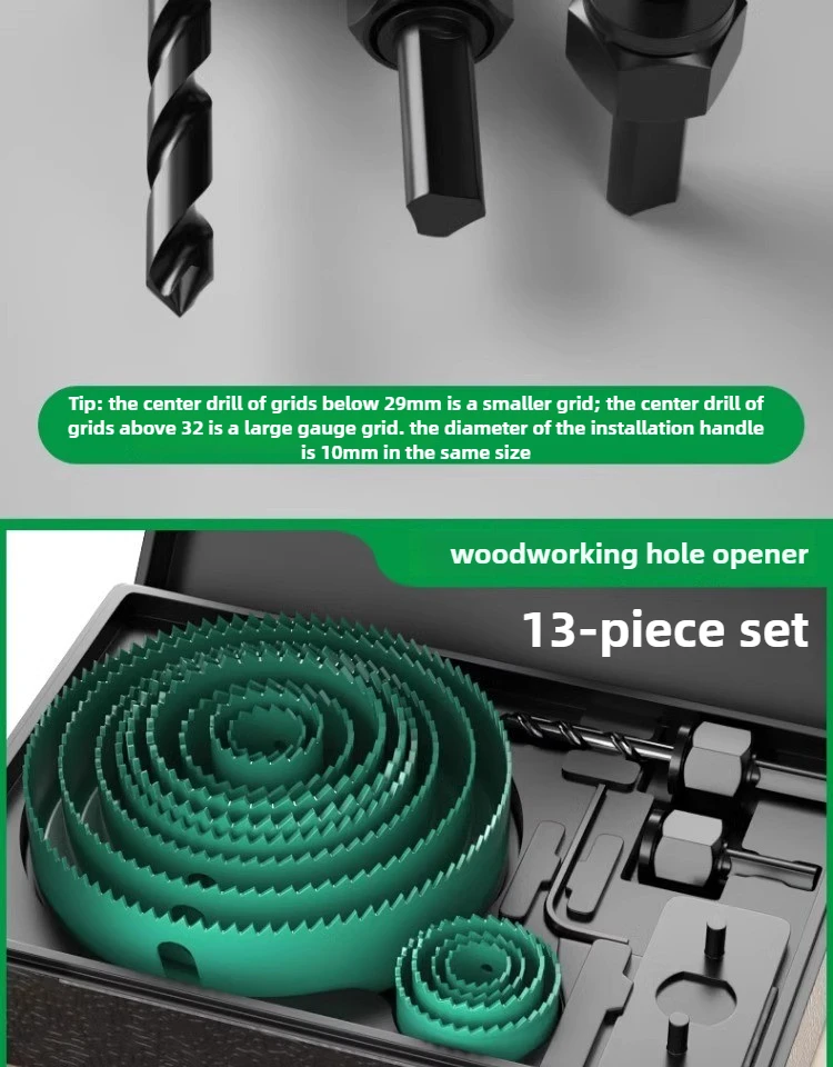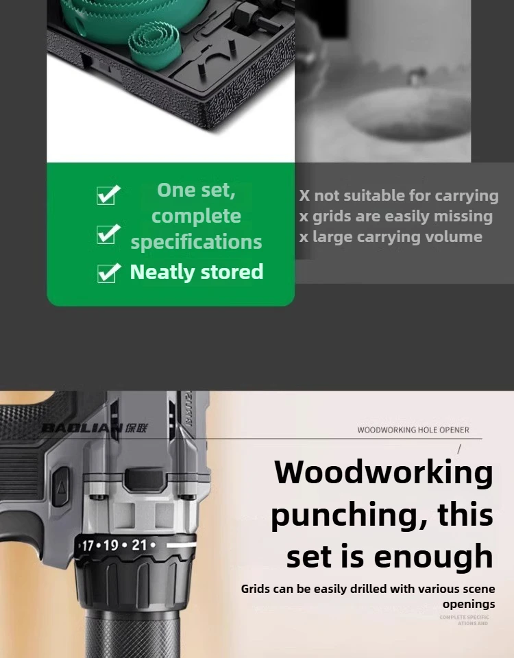 The BAOLIAN Hole Saw Set offers a versatile size range from 19-64mm to 19-127mm, catering to various woodworking needs.