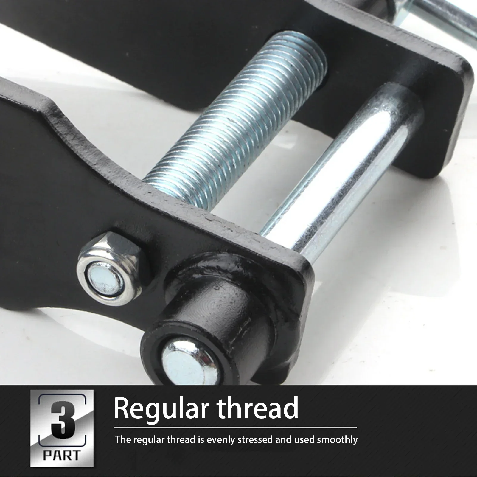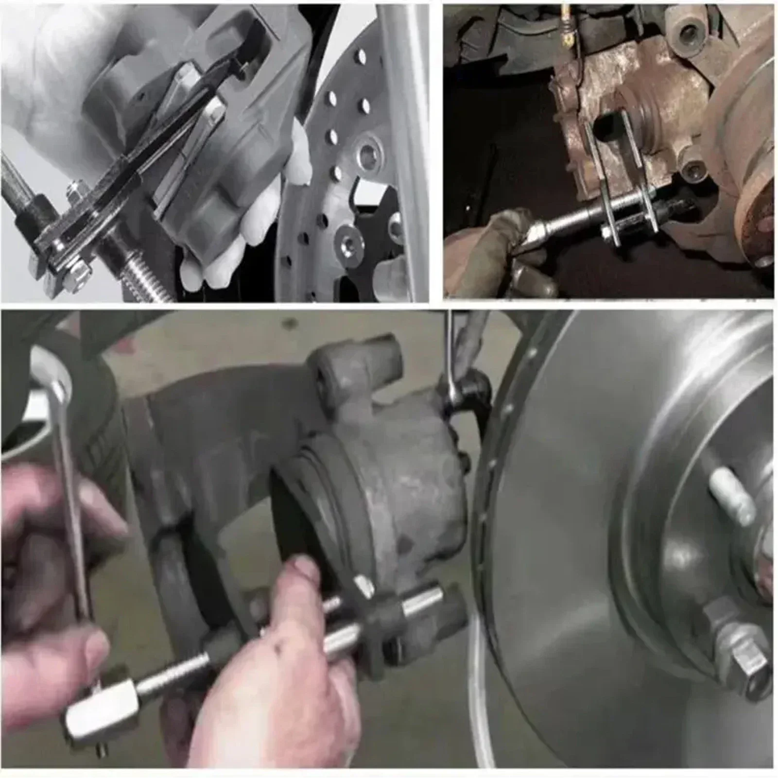 2,Exquisite Craftsmanship: This Brake Spreader is crafted with delicate screw threads. Smooth and regular, uniform force. The top of the screw rod is firmly locked and safe to use.