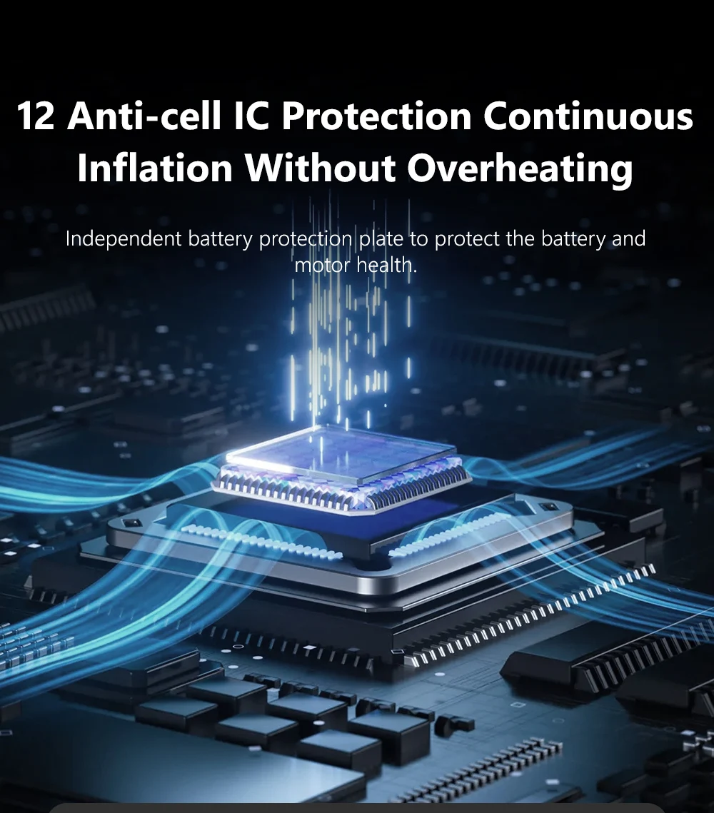 lnflation Without Overheating Independent battery protection plate to protect the battery and motor health.