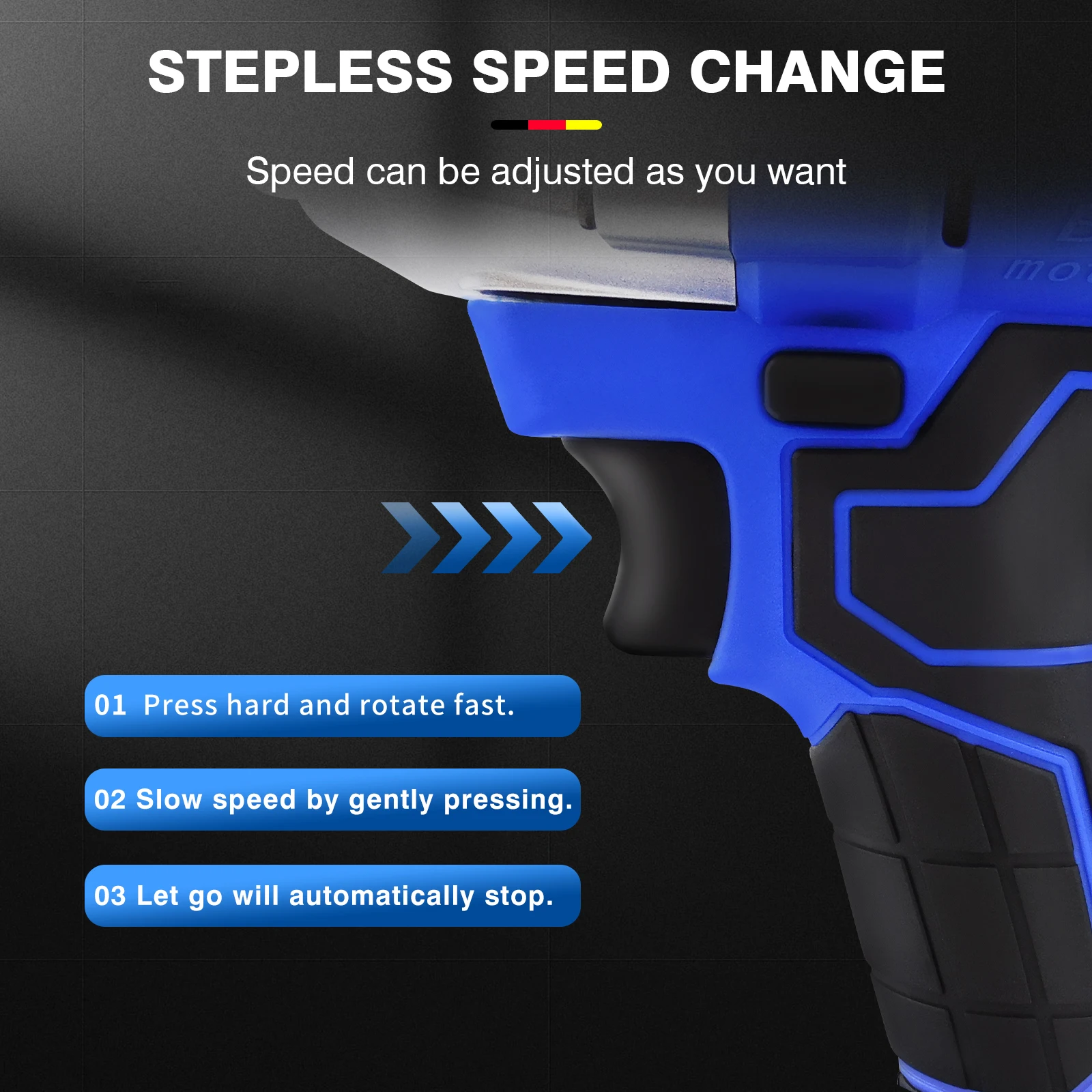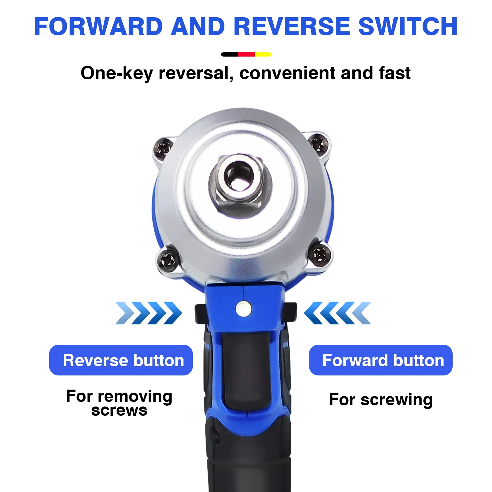 ⭐Variable Speed Trigger: You can easy change the speed of electric impact wrench between 0-3200RPM to meet various working demands. The clockwise or anti-clockwise rotation can be achieved by the forward/ reverse.