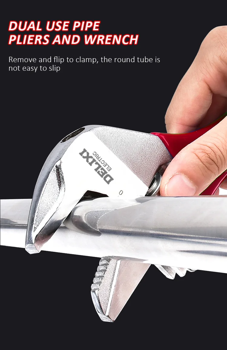 5. Pipe wrench dual use, remove and turn to clamp the round pipe is not easy to slip