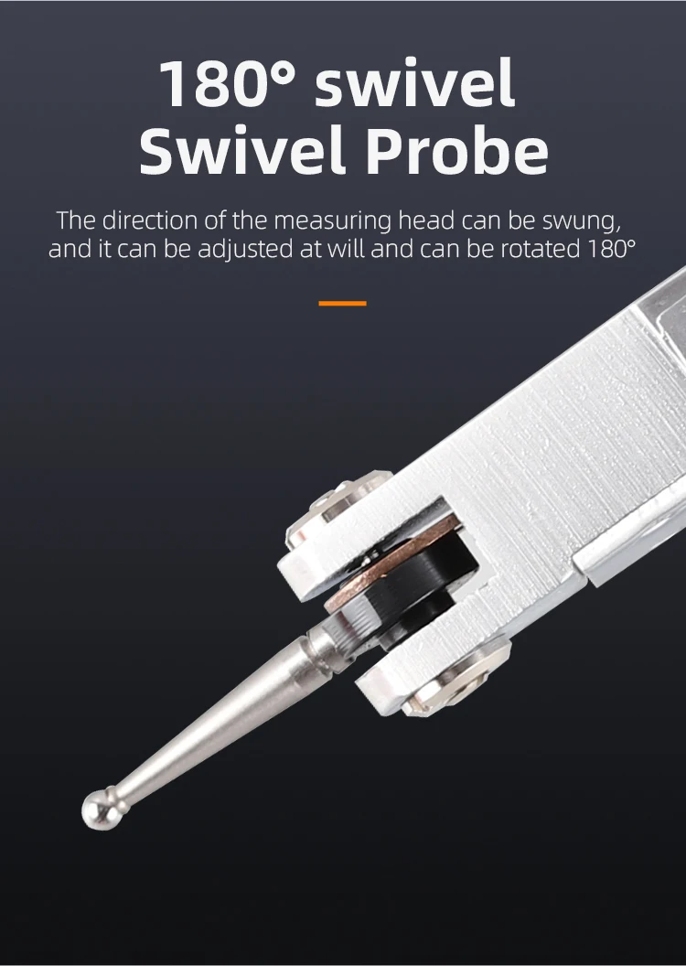 Features: The measuring probe of the lever dial indicator can be adjusted 240° at will. The measuring probe is made of alloy tungsten steel. Accessories combination: shaft sleeve φ6mm, φ8mm.
