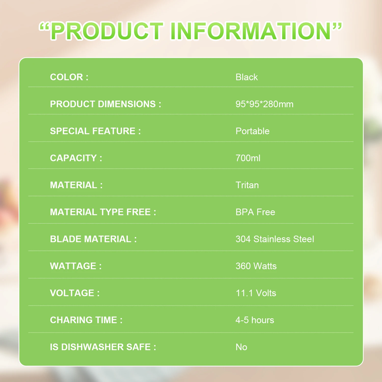 With an 360W motor, travel blender crushes ice or frozen fruits with ease, delivering the power needed to create the perfect smoothie every time. Not only does it have a portable design, but it also boasts a power comparable to that of a plug-in juicer, delivering a silky smooth blending experience.