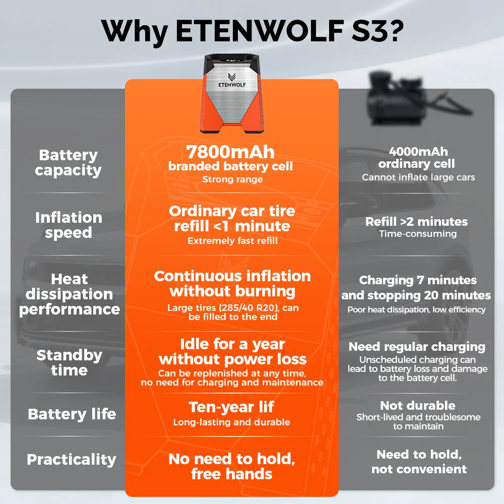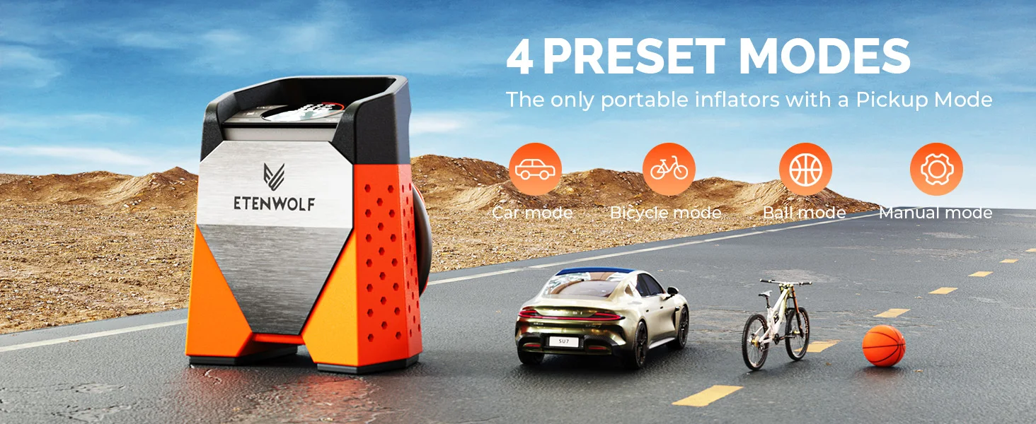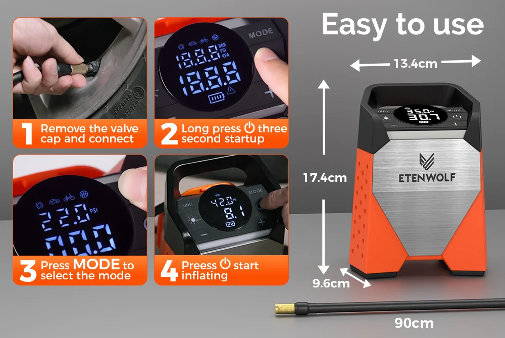 3.100% duty cycle air pump, can continuously inflate your large-sized tires