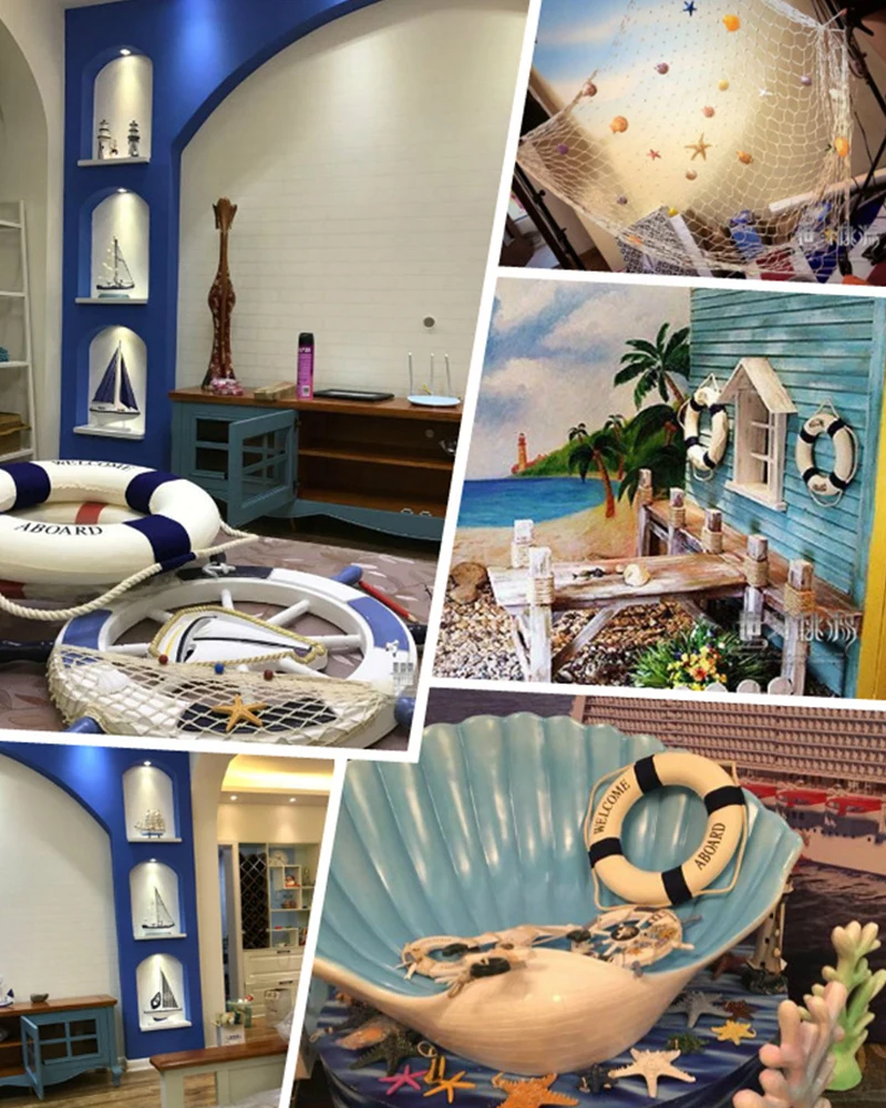Mediterranean style lifebuoy decoration: Mediterranean style fishing net decoration