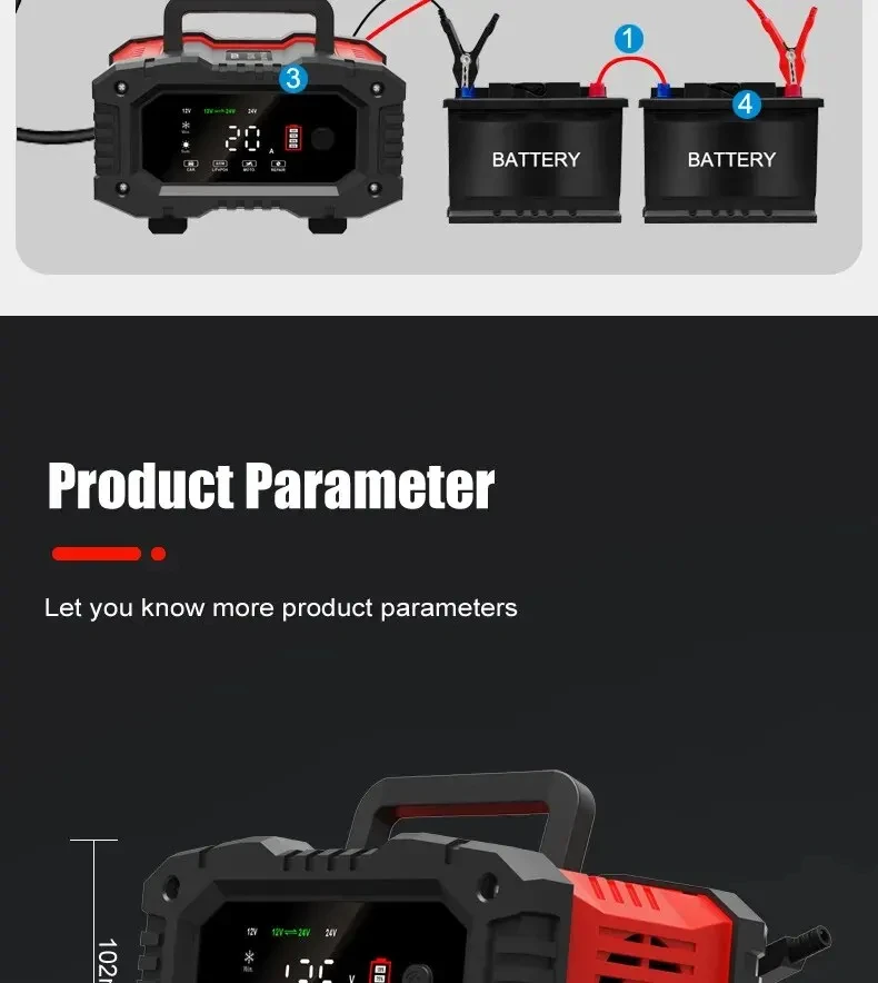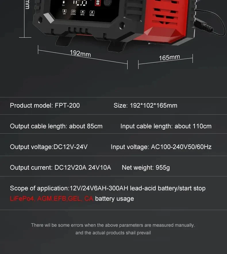 Types of batteries: Most types of lead acid batteries including Calcium, Gel AGM, Wet, LiFePO4,lead Acid, etc..