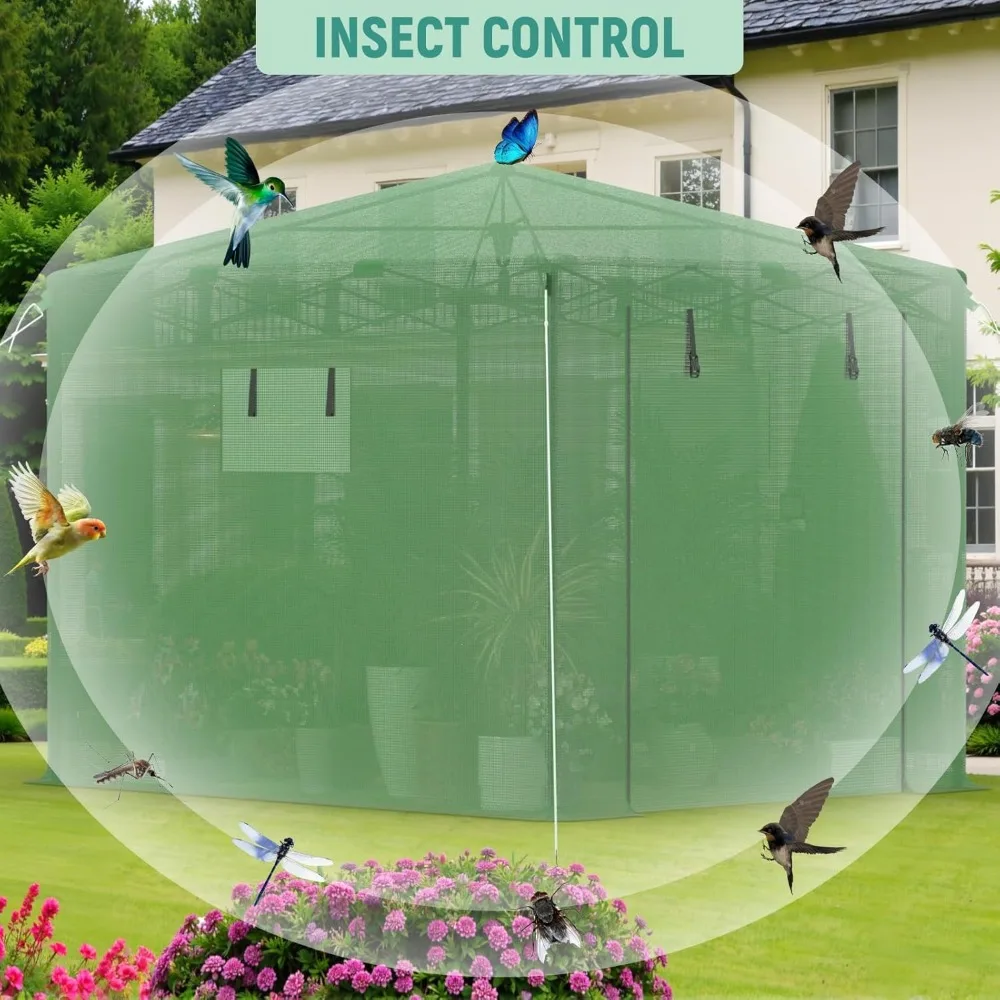 • 【walk in pop up greenhouse】The spacious walk-in pop-up greenhouse gives you freedom of movement for moving and handling plants. The rolled up side window with a screen provides good ventilation and makes it easier to block birds and observe plants.