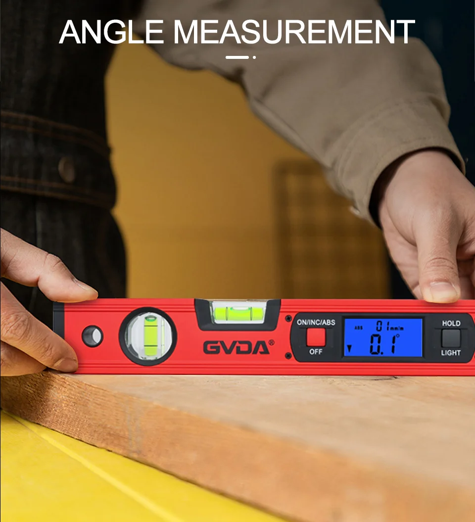 GVDA digital level measure all angles in either 360°range or four 90°quadrants. It can display both degree and slope .