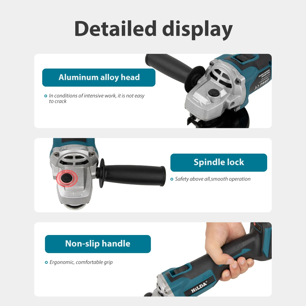 The high-performance motor of the cordless angle grinder can generate a speed of up to 9000 rpm, achieving powerful cutting, removal, and precision machining. You can choose different cutting speeds according to your job requirements.