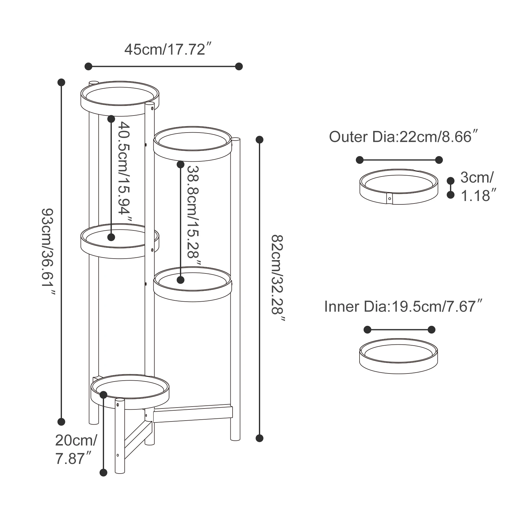 Each Tier Height: 20cm/ 7.87 inch, 82cm/ 32.28 inch, 93cm/ 36.61 inch