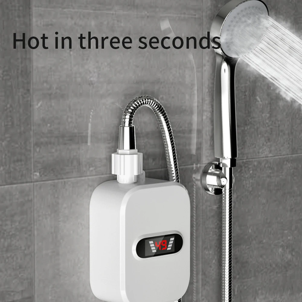 The water heating device is small and compact and does not take up space. Easy to install, IPX4 waterproof, the body is fearless of water droplets splashing, suitable for bathroom, kitchen, and other occasions.