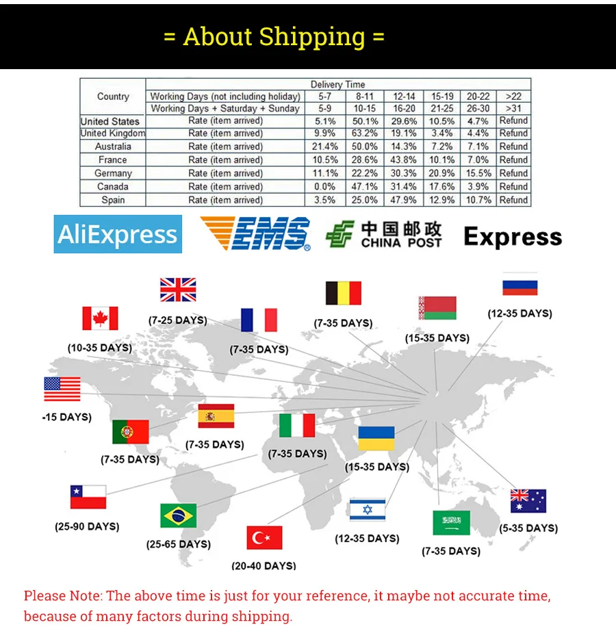 5. If you can not received your shipment within 30 days after payment, please contact us. We will track the shipment and get back to you as soon as possible with a reply, we assure to make you feel santisfied.