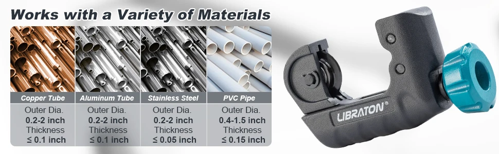 • Multifunctional Design :The Libraton Tubing Cutter is a multifunctional tool, designed for shearing aluminum, stainless steel, and other metals. Its U-shaped design makes it easy to use and versatile.