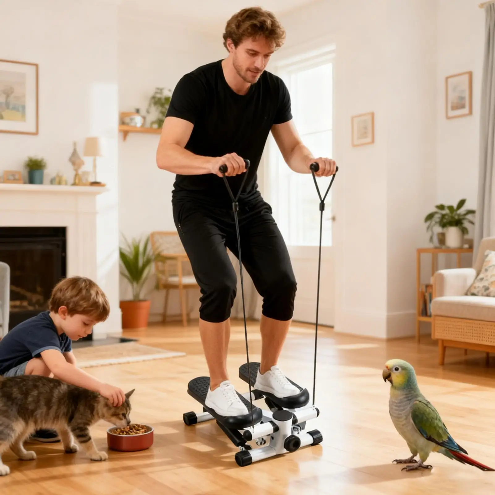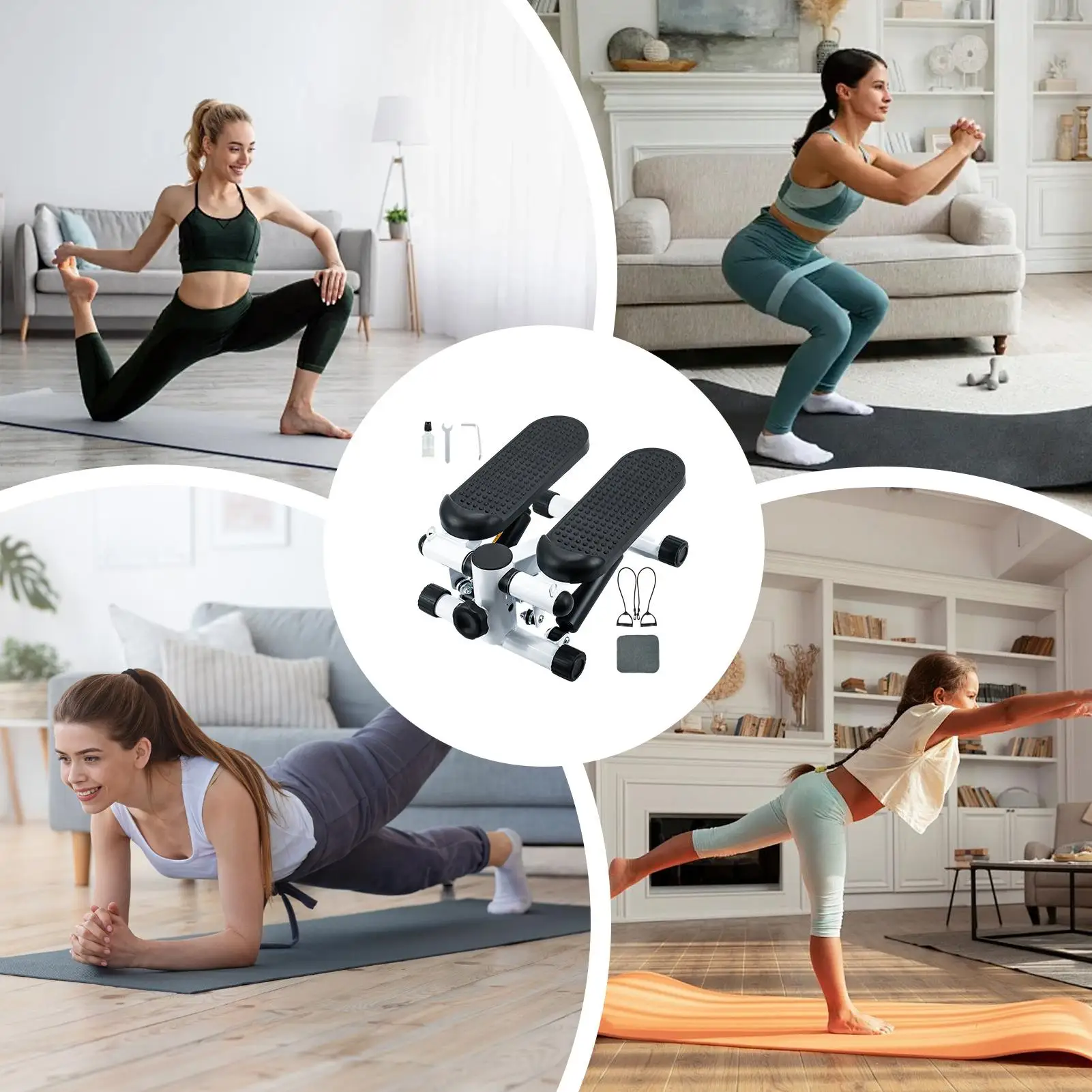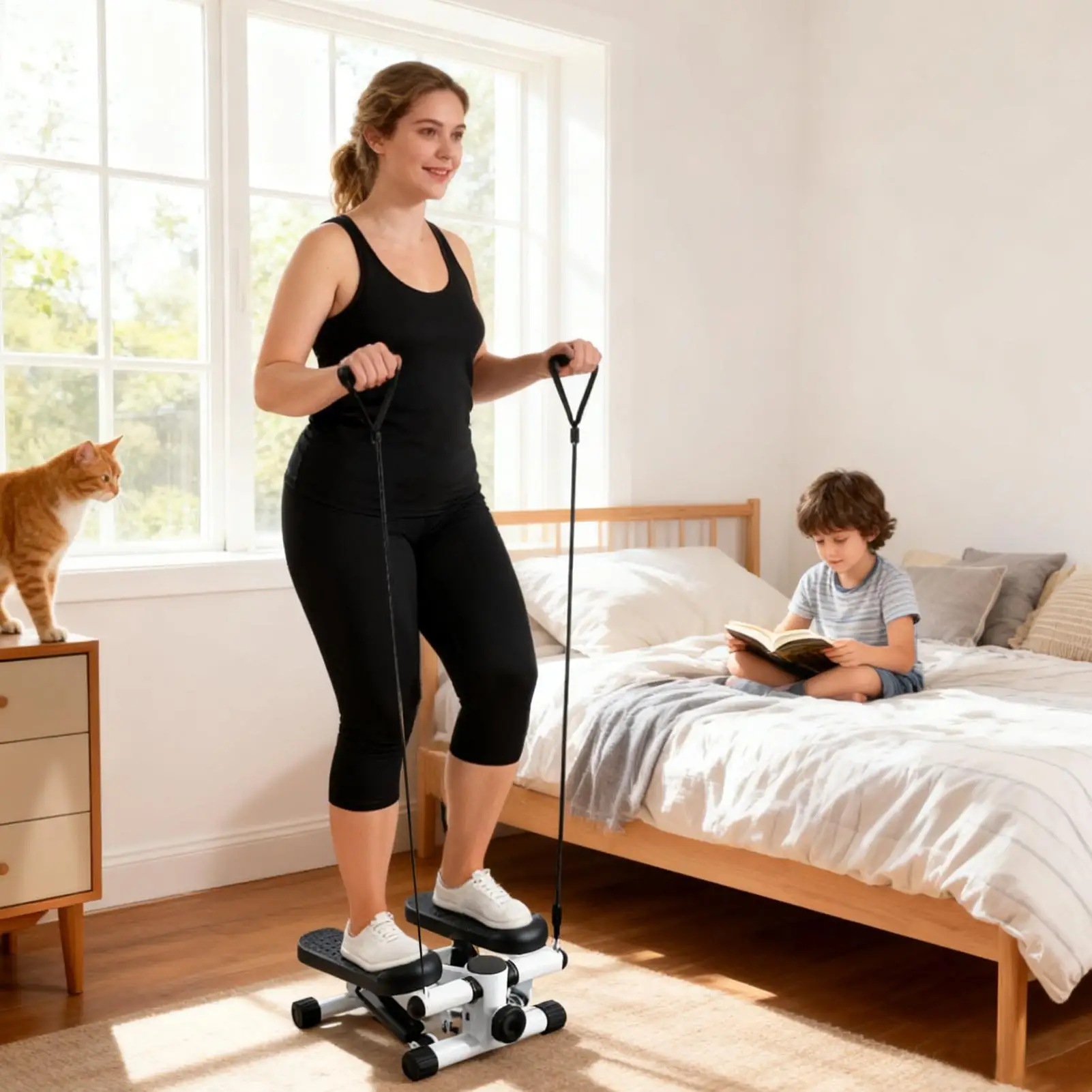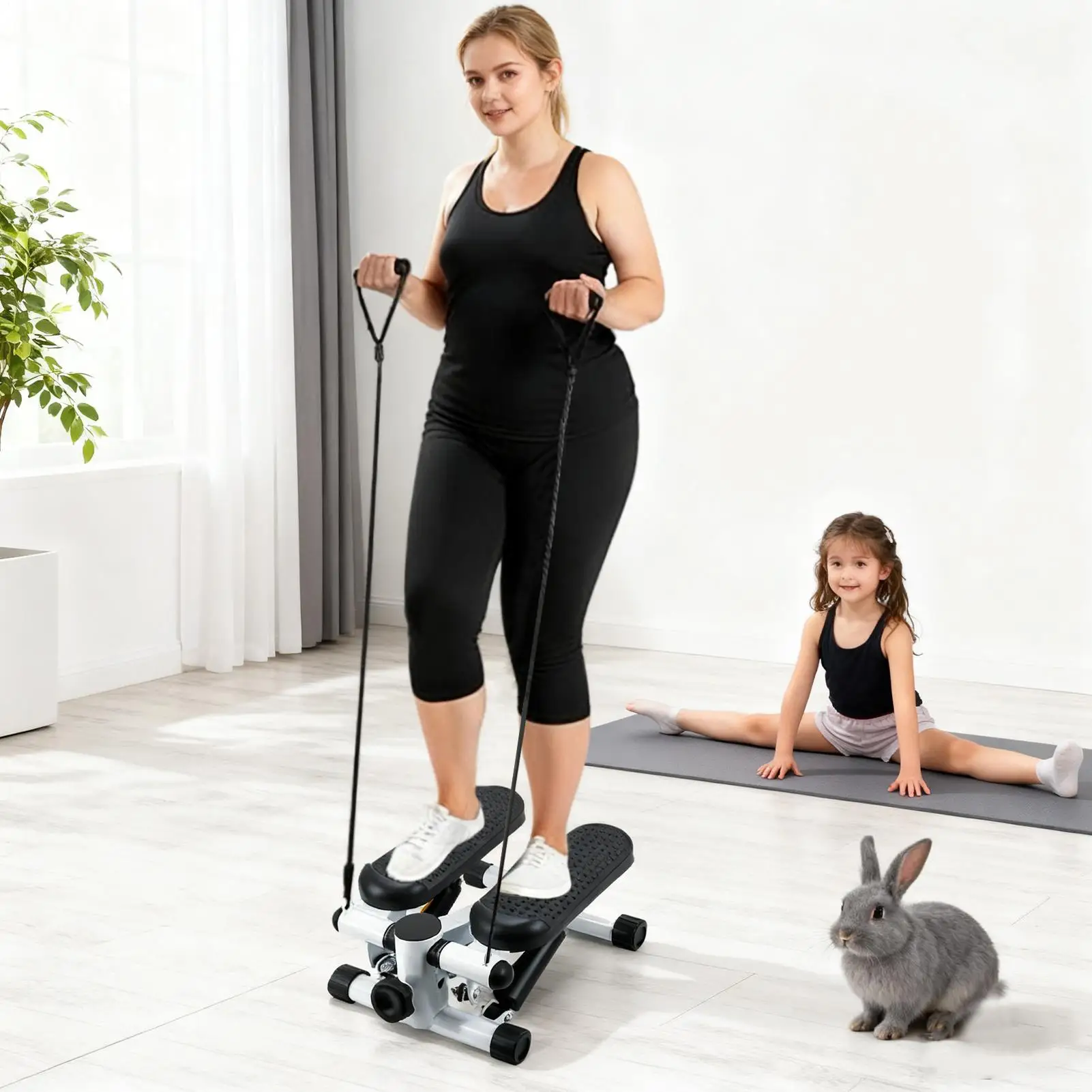 1.Arm-Back Strengthening: Featuring detachable resistance ropes, the Mini Stepper strengthens arms and back muscles, providing versatile workouts that improve body alignment and build core stability at home or office