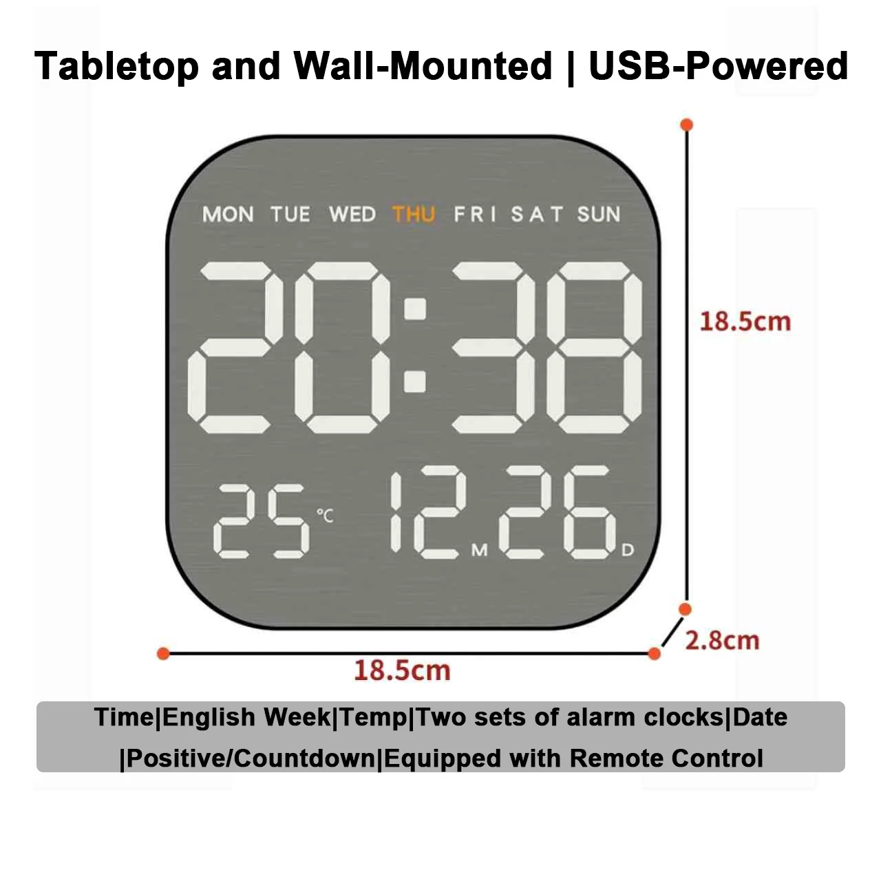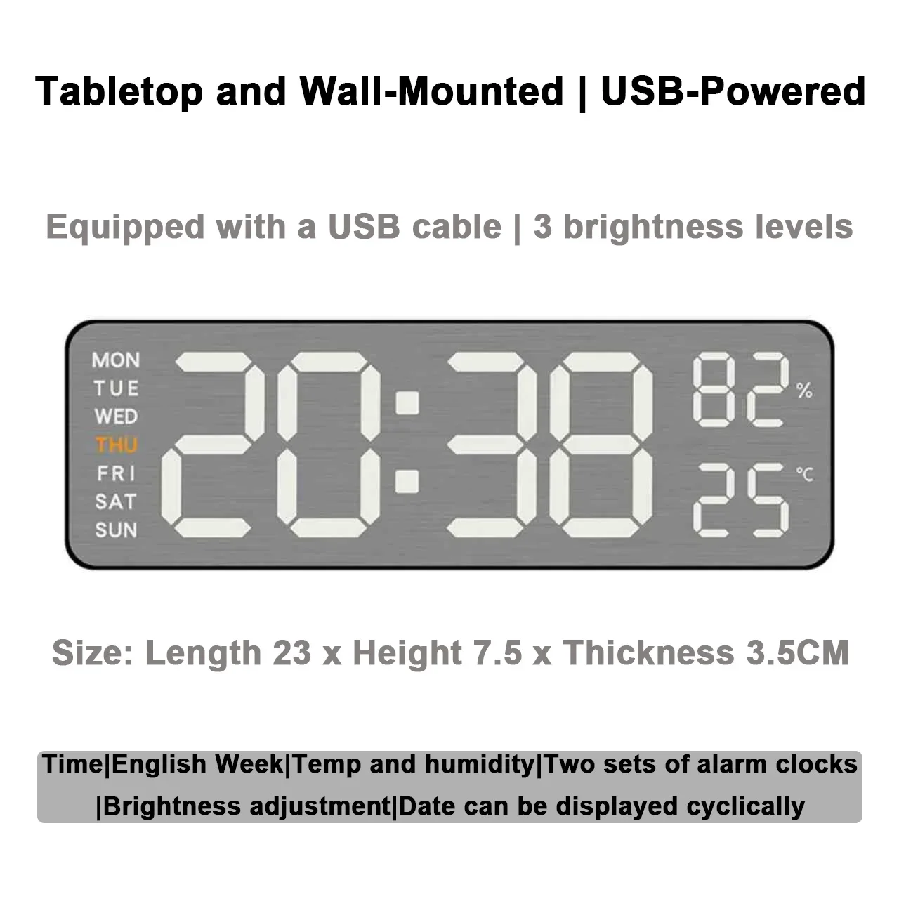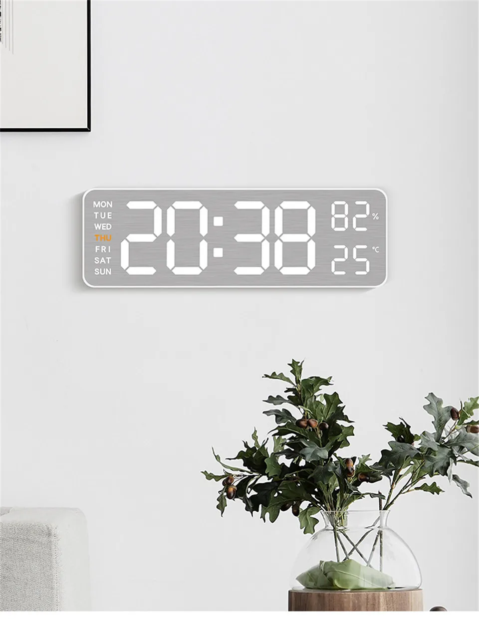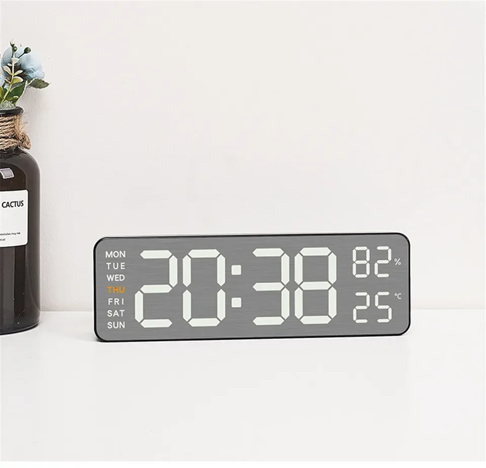 Mirror Brushed Finish Wall Clock Premium Feel Silent Wall Clock Table Alarm Clock Temp Display Bedroom Office Living Room Decor