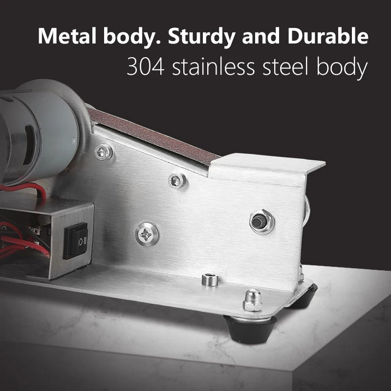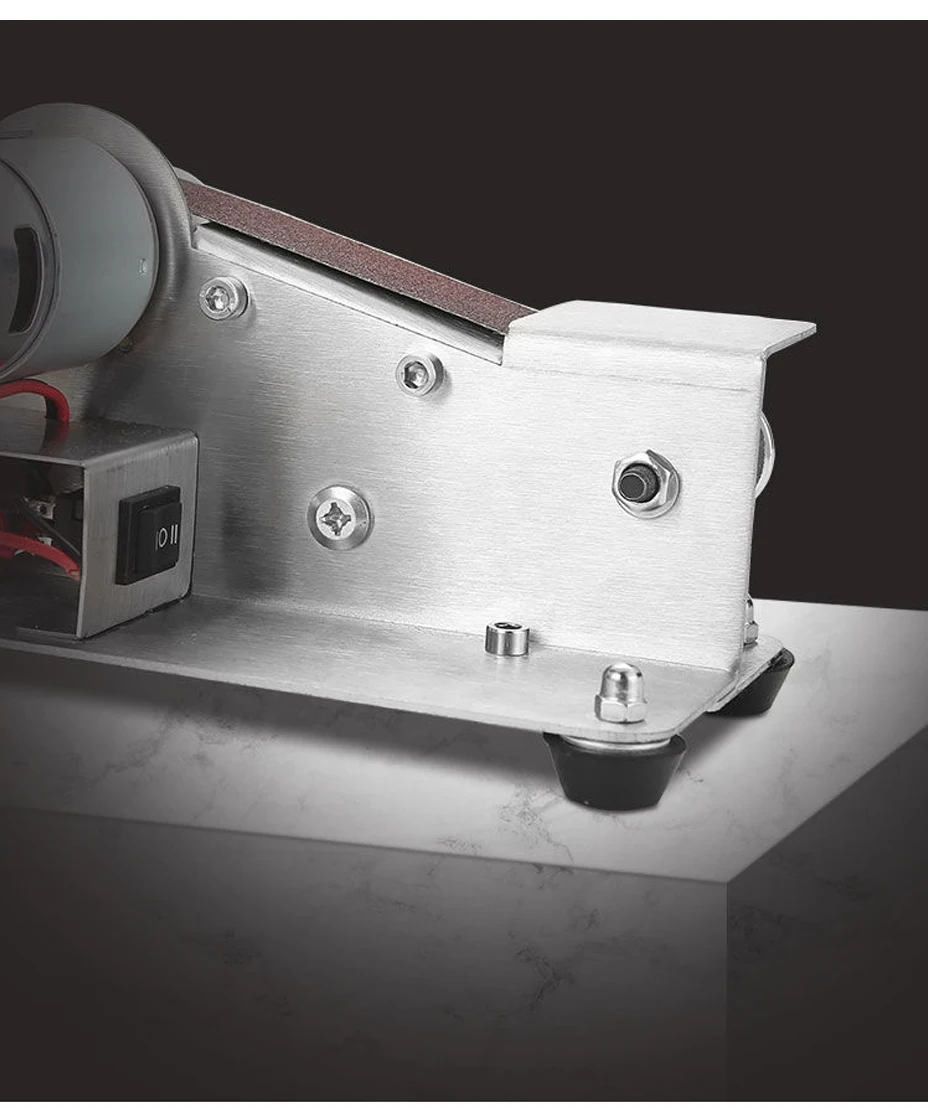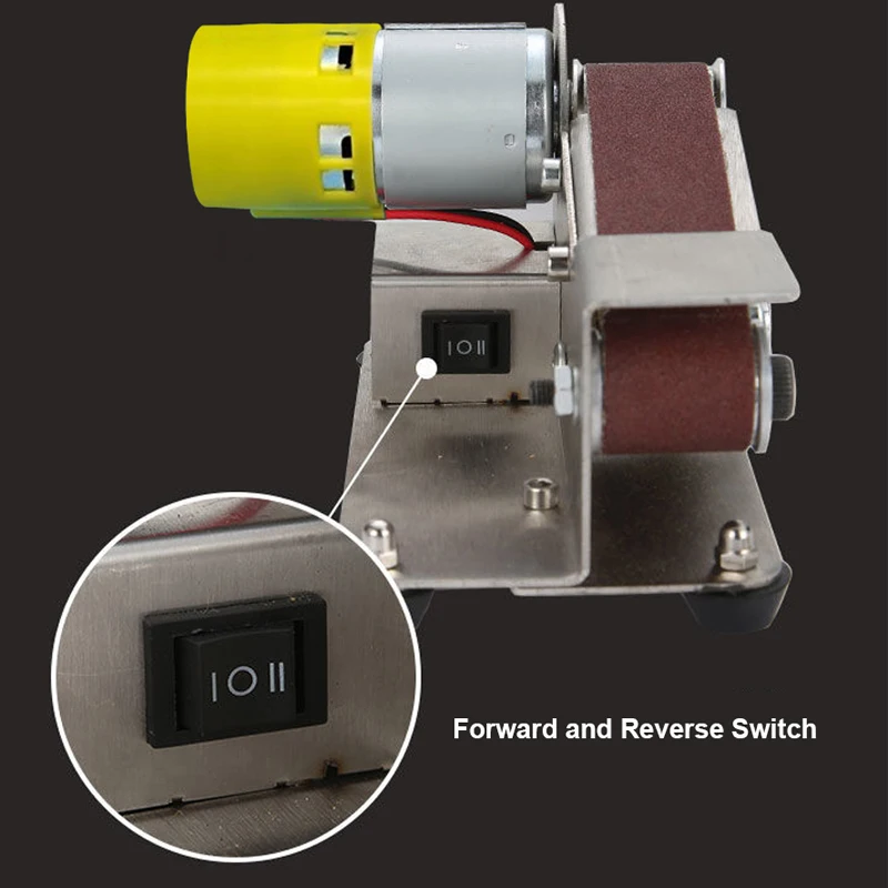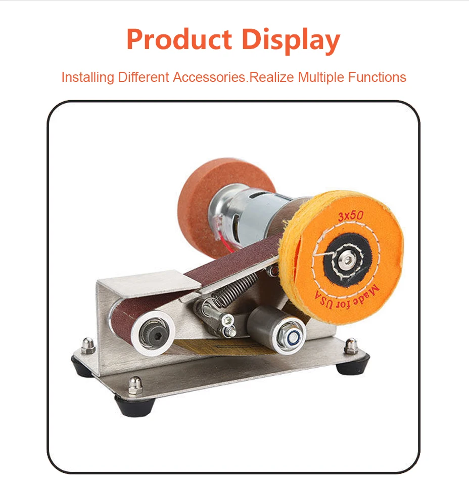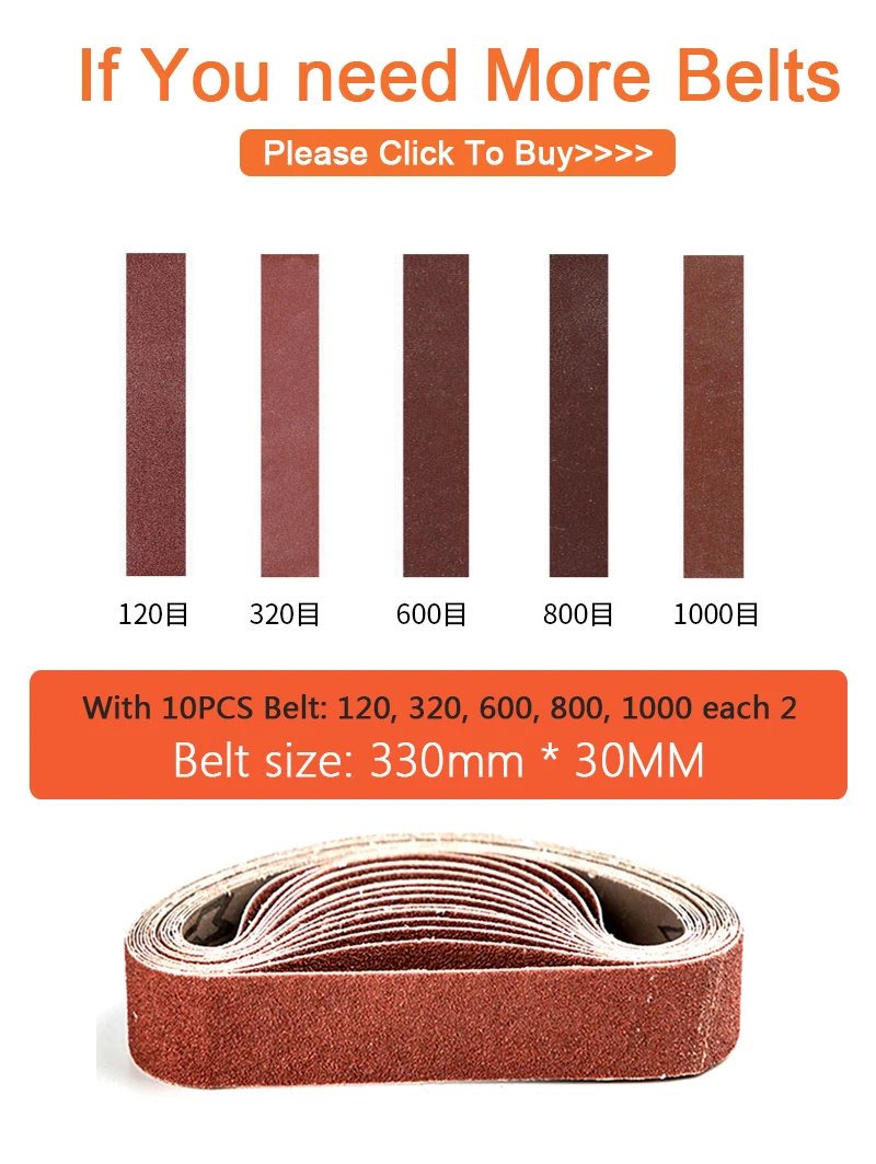 This is a multifunctional belt sander, mini portable, low noise, can be used for high-speed steel drill bit rough grinding, blade edging, fine grinding tungsten steel turning tool, polishing Bodhi root, etc., easy to install and operate, is a home DIY tool.