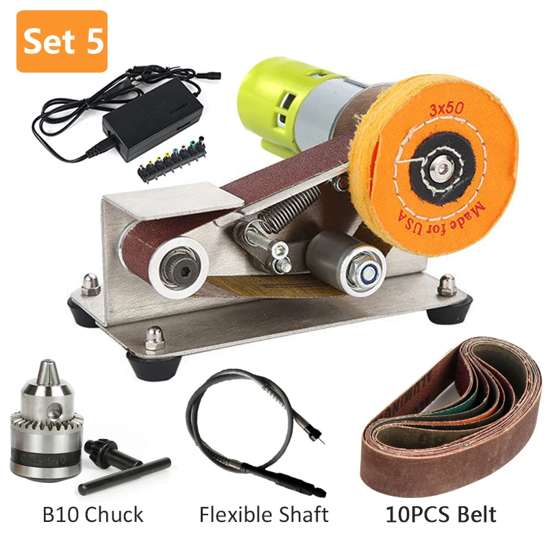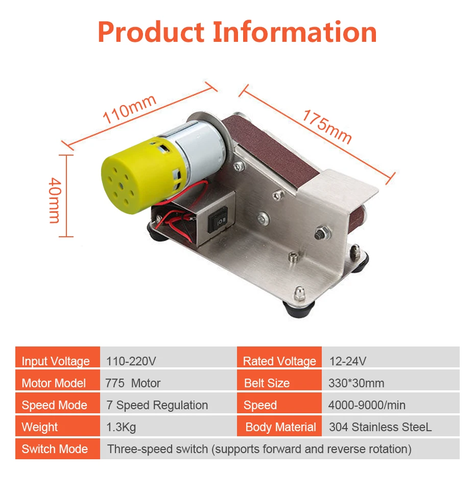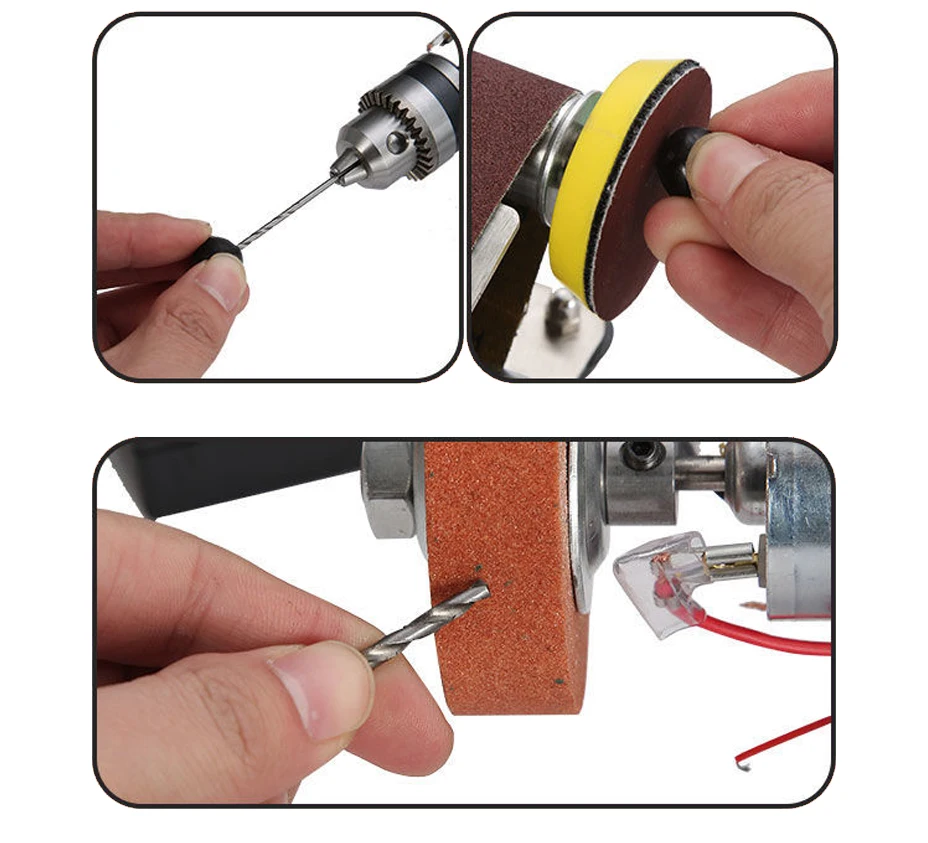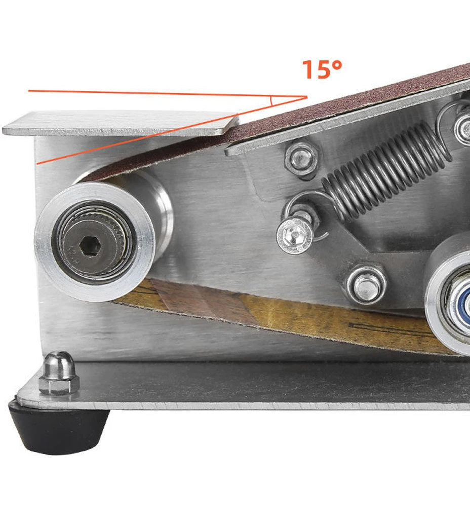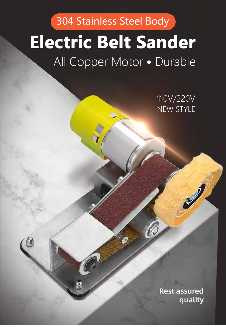 This is a multifunctional belt sander, mini portable, low noise, can be used for high-speed steel drill bit rough grinding, blade edging, fine grinding tungsten steel turning tool, polishing Bodhi root, etc., easy to install and operate, is a home DIY tool.