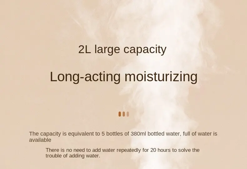 1. Large Capacity :With a capacity of 2 L, this humidifier can hold a large amount of water, ensuring long-lasting humidification.