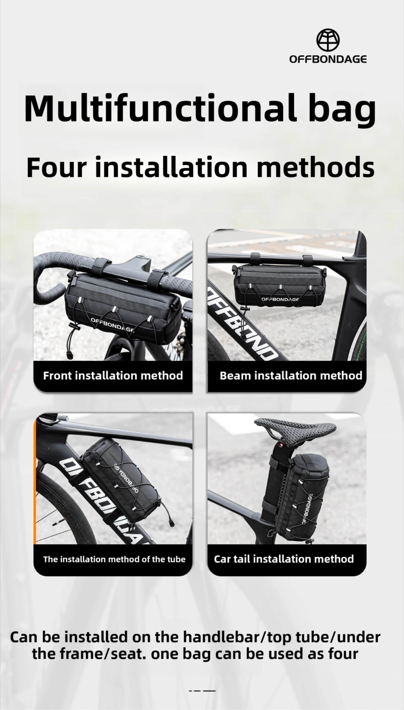 Adaptability:Our bag is universally fitting, suitable for various bicycle models, including folding bikes, road bikes, and mountain bikes. Choose between two different installation methods to suit your ride.