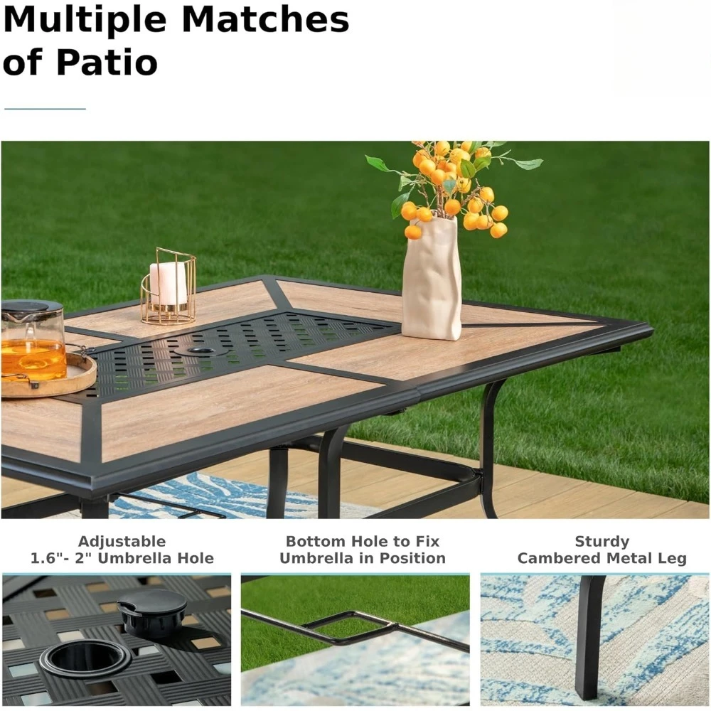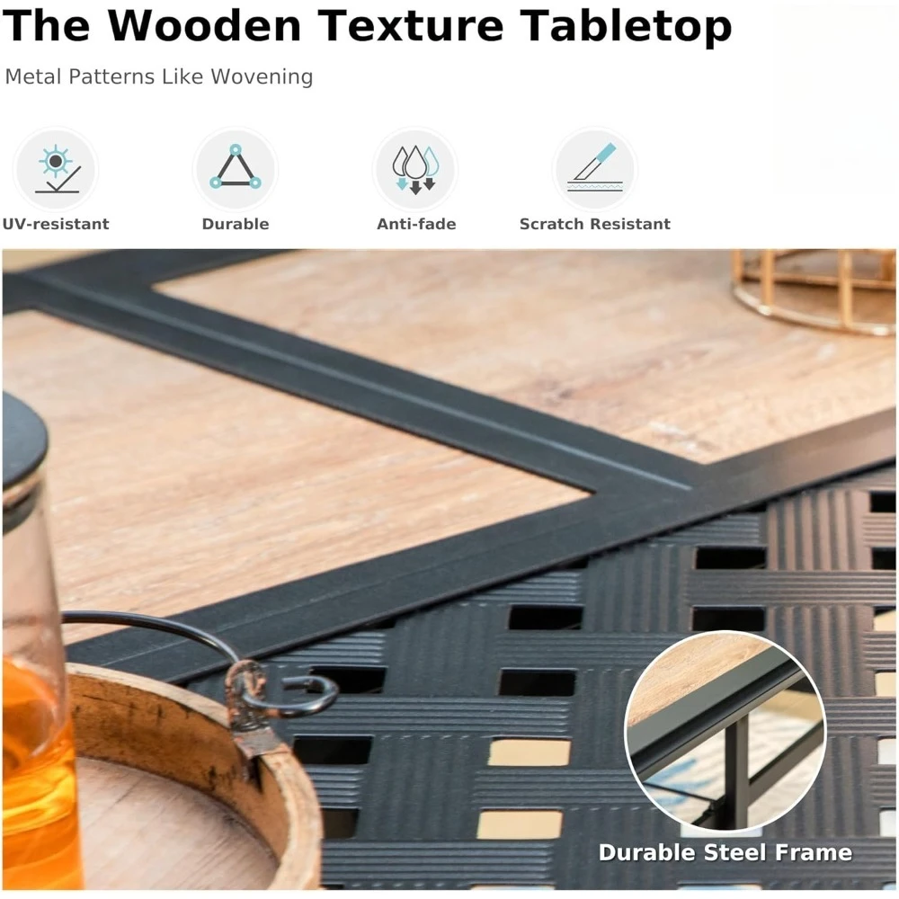 • 【Unique Table Top】The patio table boasts attractive imitation wood panels that brings a touch of nature to your patio. Enjoy the look of wood without the maintenance – a perfect addition to your patio dining table. Meanwhile,the embossed metal meshes enhances your patio’s aesthetic charm, making the table very unique